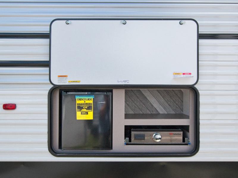Convenient Features: Enjoy extra-large baggage doors for easy gear storage, tinted windows to keep harmful sun rays out, and solid folding steps with a large grab handle for effortless entry and exit. The full glass friction hinged entry door and exterior shower add to the convenience, making it easy to rinse off pets or yourself before heading inside.
