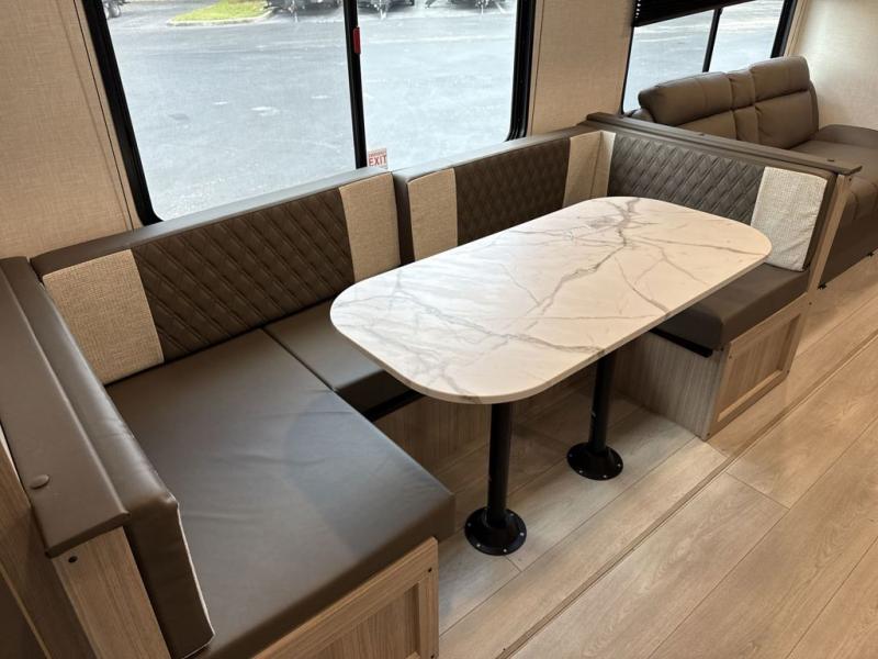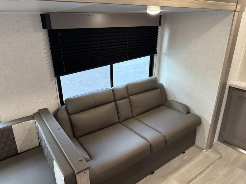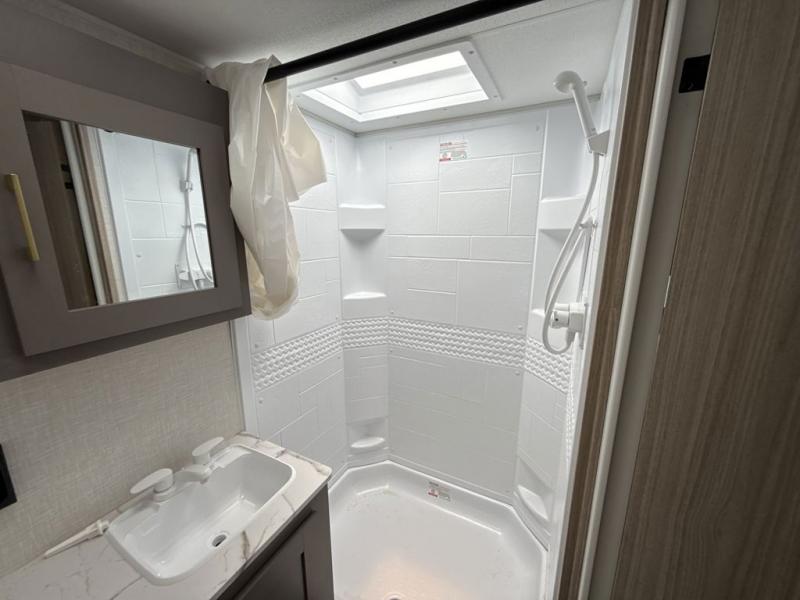 Wow! Take a look at this travel trailer with two private bedroom that include queen beds and space to store your clothes. Each room also has a TV mount if you choose to bring along your own television for late-night movies in bed. The main living area is spacious with the large slide out, and here you can relax on the sofa or around the U-shaped dinette. This model also includes a full bath with a 40" shower that will allow you to clean up each day.