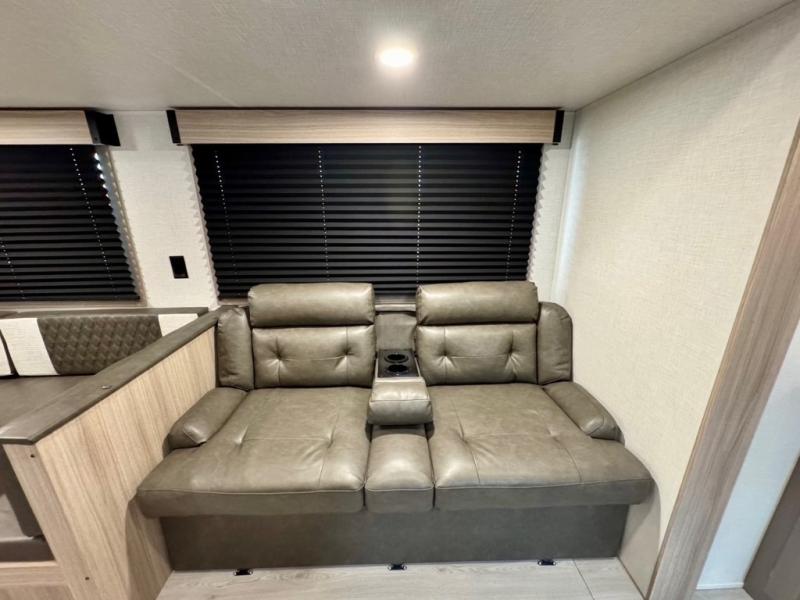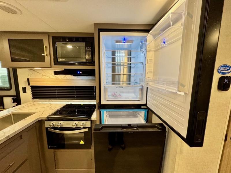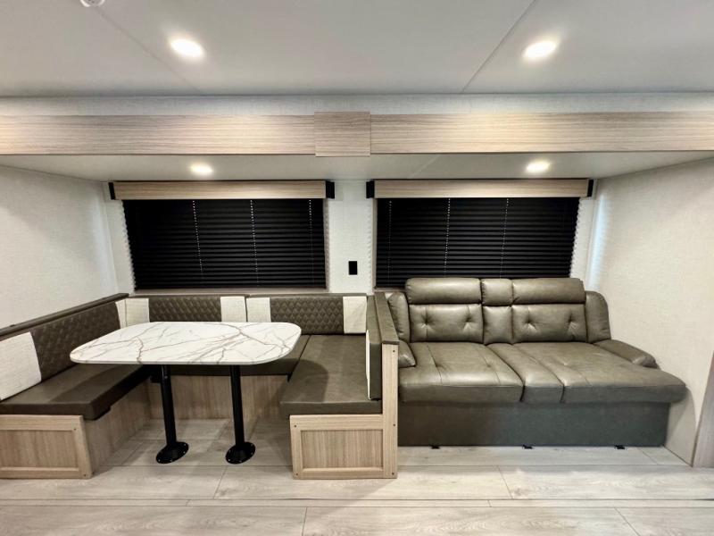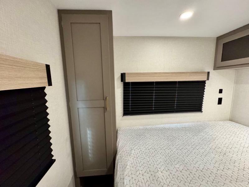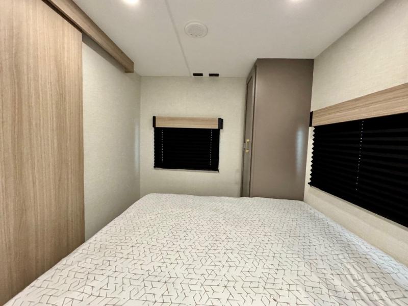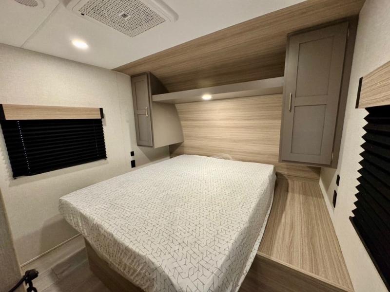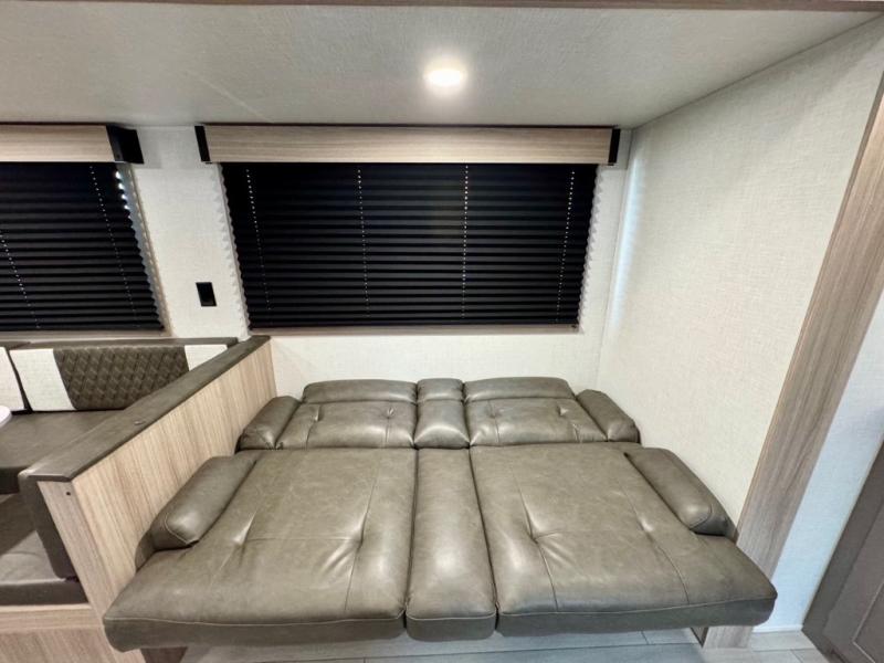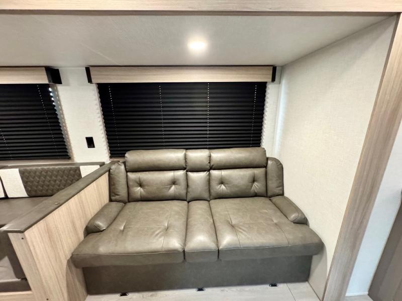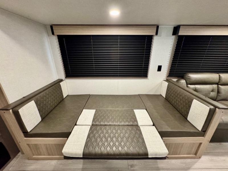 Wow! Take a look at this travel trailer with two private bedroom that include queen beds and space to store your clothes. Each room also has a TV mount if you choose to bring along your own television for late-night movies in bed. The main living area is spacious with the large slide out, and here you can relax on the sofa or around the U-shaped dinette. This model also includes a full bath with a 40" shower that will allow you to clean up each day.