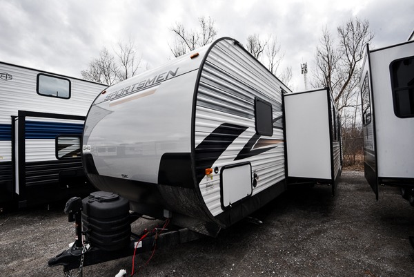 Each Sportsmen SE travel trailer and toy hauler by KZ is constructed with KZ exclusive tough shield exterior metal, a one-piece seamless walk-on Tufflex roofing material, and diamond plate rock guard to protect your unit from road debris. You will appreciate the extra large baggage doors for stowing away your gear when not in use, and tinted windows to help keep the harmful sun rays out plus keeping it cooler inside. Some of the exterior conveniences found in the mandatory Advantage Package are the solid folding steps with a large folding grab handle for easy entry and exit, a full glass friction hinged entry door, plus an exterior shower for your pets or to rinse off before you head inside. You'll also appreciate the nitrogen-filled tires, solar and backup camera prep, plus a Leash Latch with a bonus beverage opener. You'll feel right at home inside with linoleum flooring throughout, a 13,500 BTU air conditioner, large overhead cabinets, a shower surround, and much more!