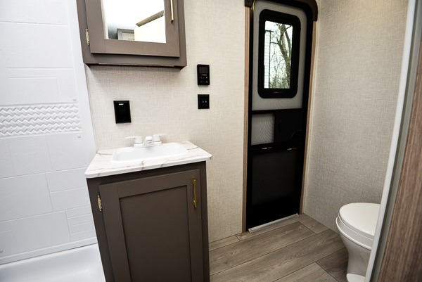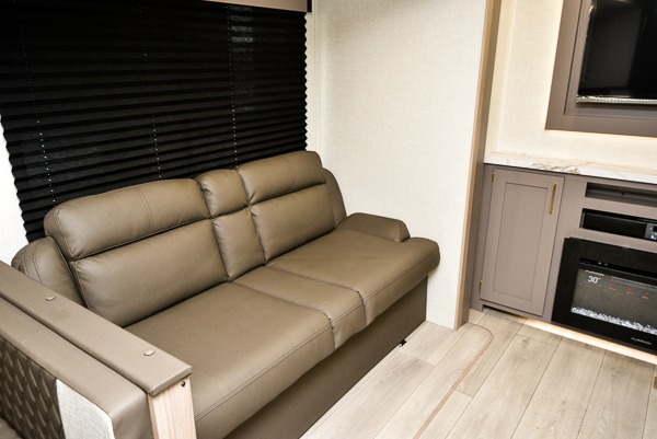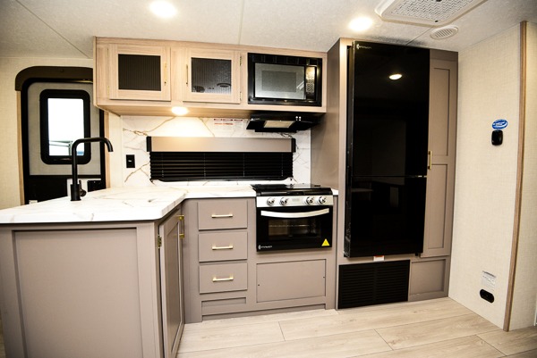 If you've been looking for a travel trailer with plenty of space for your family or group of friends, look no further than this one! The private bunkhouse includes two bunks, plus a third bunk across the room and a jiffy sofa below. There is also a bench seat here, and the full bath is close by for convenience. Everyone can gather in the main living area at the 80" U-shaped dinette, and there is a 64" sofa here for more seating space. If the weather is nice, head outdoors to relax under the 20' power awning with LED lights as the cook prepares dinner on the outside griddle!