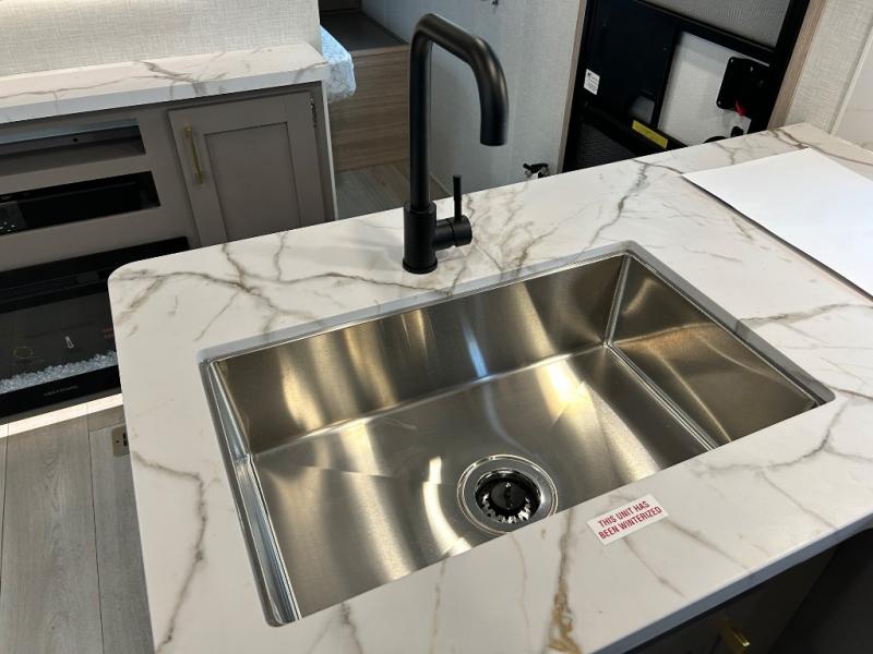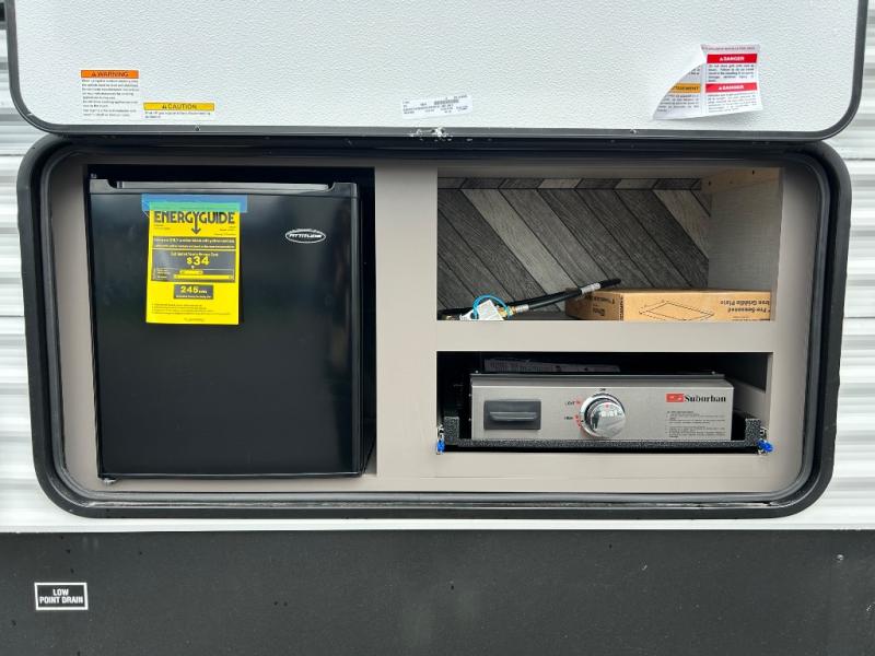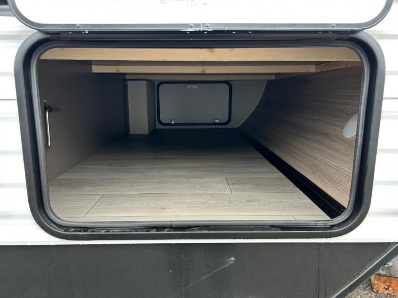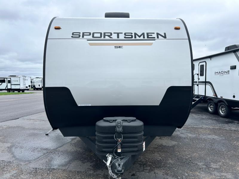 Each Sportsmen SE travel trailer and toy hauler by KZ is constructed with KZ exclusive tough shield exterior metal, a one-piece seamless walk-on Tufflex roofing material, and diamond plate rock guard to protect your unit from road debris. You will appreciate the extra large baggage doors for stowing away your gear when not in use, and tinted windows to help keep the harmful sun rays out plus keeping it cooler inside. Some of the exterior conveniences found in the mandatory Advantage Package are the solid folding steps with a large folding grab handle for easy entry and exit, a full glass friction hinged entry door, plus an exterior shower for your pets or to rinse off before you head inside. You'll also appreciate the nitrogen-filled tires, solar and backup camera prep, plus a Leash Latch with a bonus beverage opener. You'll feel right at home inside with linoleum flooring throughout, a 13,500 BTU air conditioner, large overhead cabinets, a shower surround, and much more!