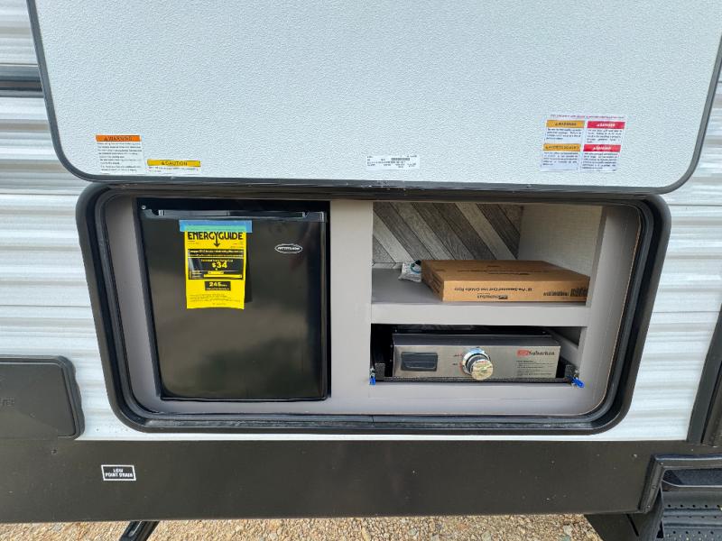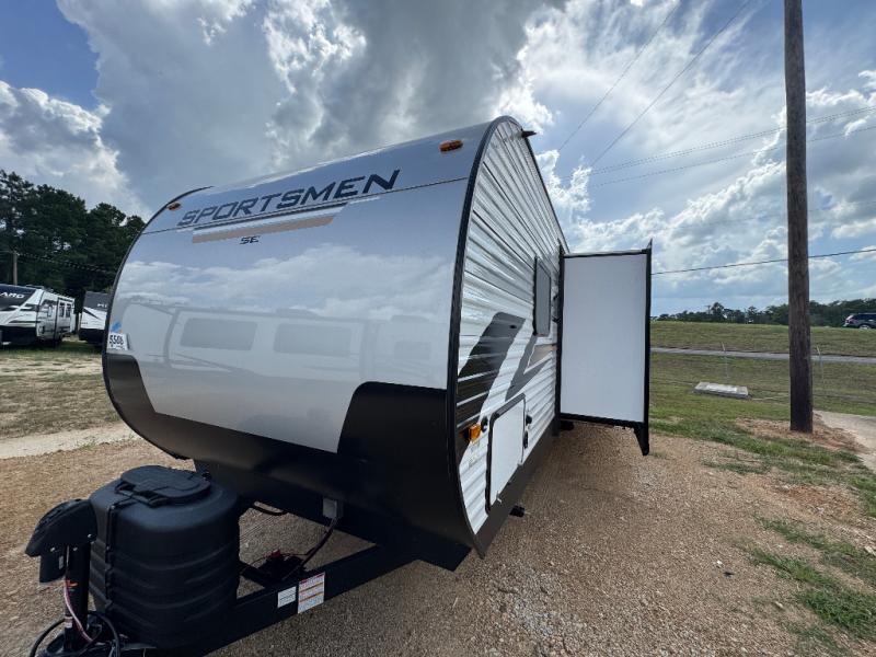 Each Sportsmen SE travel trailer and toy hauler by KZ is constructed with KZ exclusive tough shield exterior metal, a one-piece seamless walk-on Tufflex roofing material, and diamond plate rock guard to protect your unit from road debris. You will appreciate the extra large baggage doors for stowing away your gear when not in use, and tinted windows to help keep the harmful sun rays out plus keeping it cooler inside. Some of the exterior conveniences found in the mandatory Advantage Package are the solid folding steps with a large folding grab handle for easy entry and exit, a full glass friction hinged entry door, plus an exterior shower for your pets or to rinse off before you head inside. You'll also appreciate the nitrogen-filled tires, solar and backup camera prep, plus a Leash Latch with a bonus beverage opener. You'll feel right at home inside with linoleum flooring throughout, a 13,500 BTU air conditioner, large overhead cabinets, a shower surround, and much more!