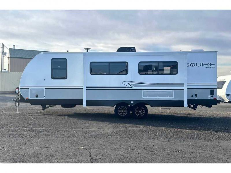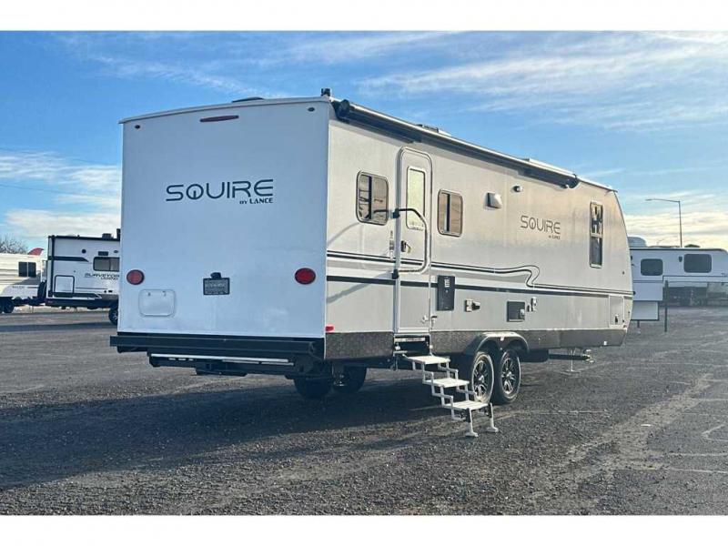 With any Squire travel trailer by Lance, you can count on high quality at an exceptional value! Each unit is built with a one-piece fully laminated roof and dual Azdel walls to extend the life of your RV. There are Slam Latch pass-through compartment doors, an exterior wash station, aluminum wheels with Goodyear radial tires, plus a manual tongue jack and manual stabilizer jacks to keep your travel trailer secure. The 12V/USB charging port(s) will keep your electronics charged up and the JBL AM/FM stereo will let you listen to your favorite tunes at the campground. Each travel trailer also includes decorative window valance boxes, solid surface countertops, hardwood framed cabinet doors, and decorative backsplash to name a few interior comforts. And don't forget to take a look at the available options to customize your Squire to best fit your needs!