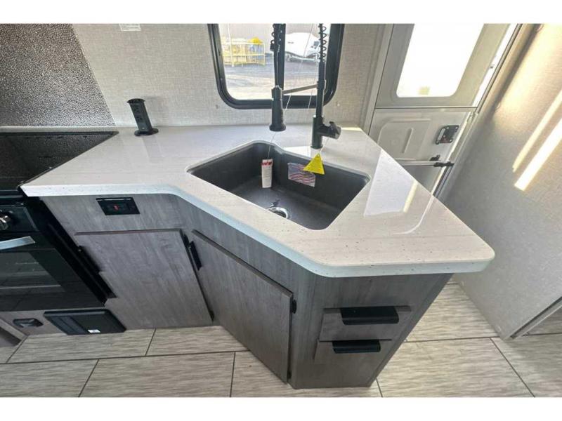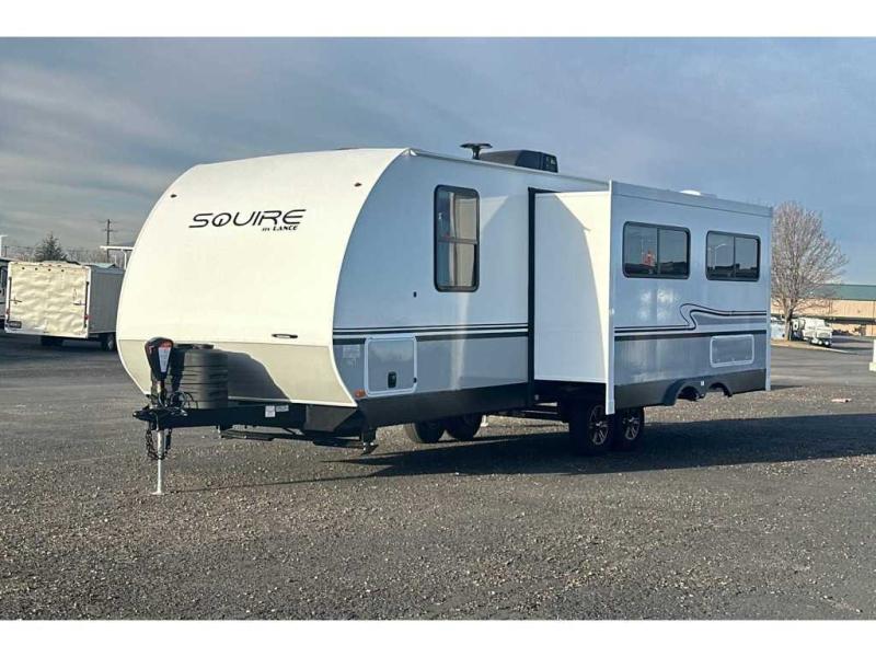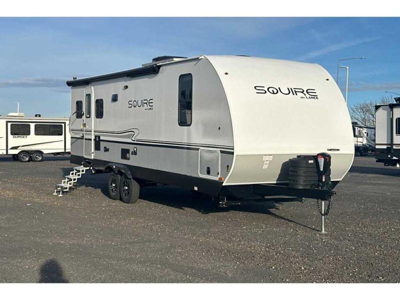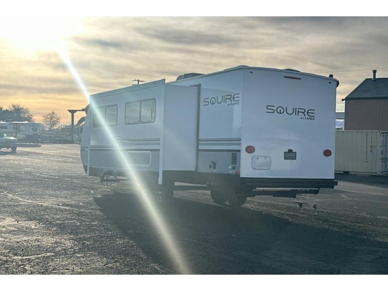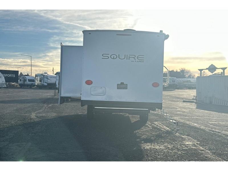 With any Squire travel trailer by Lance, you can count on high quality at an exceptional value! Each unit is built with a one-piece fully laminated roof and dual Azdel walls to extend the life of your RV. There are Slam Latch pass-through compartment doors, an exterior wash station, aluminum wheels with Goodyear radial tires, plus a manual tongue jack and manual stabilizer jacks to keep your travel trailer secure. The 12V/USB charging port(s) will keep your electronics charged up and the stereo will let you listen to your favorite tunes at the campground. Each travel trailer also includes decorative window valance boxes, solid surface countertops, and decorative backsplash to name a few interior comforts.