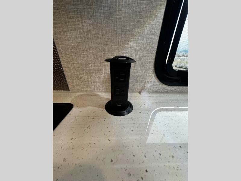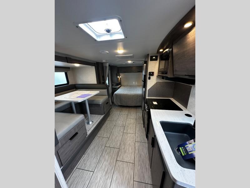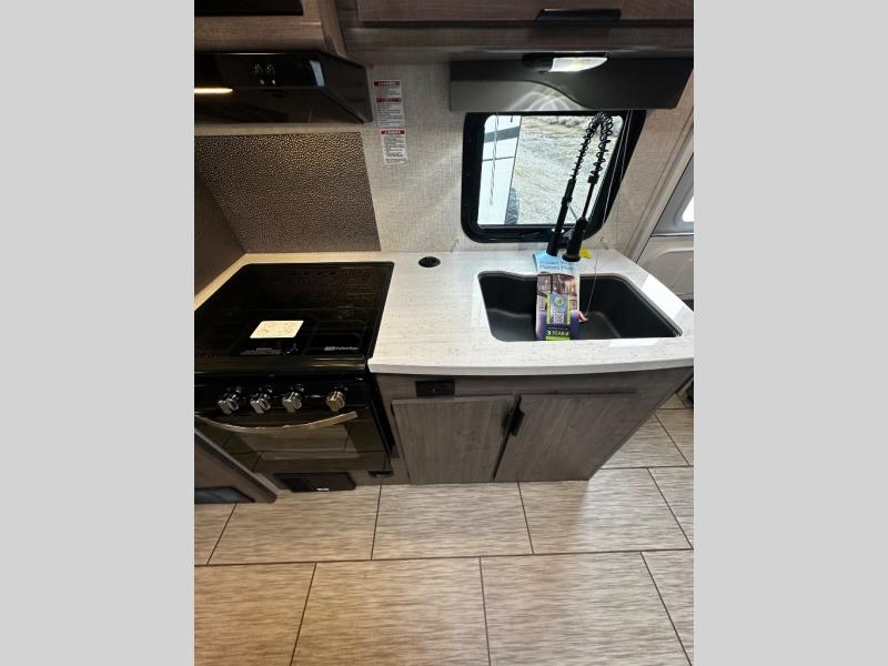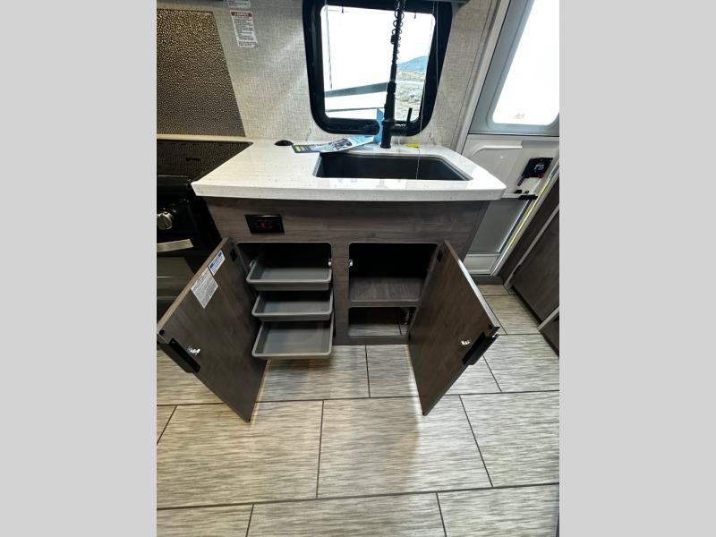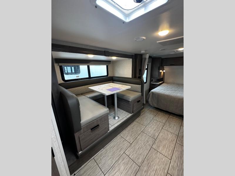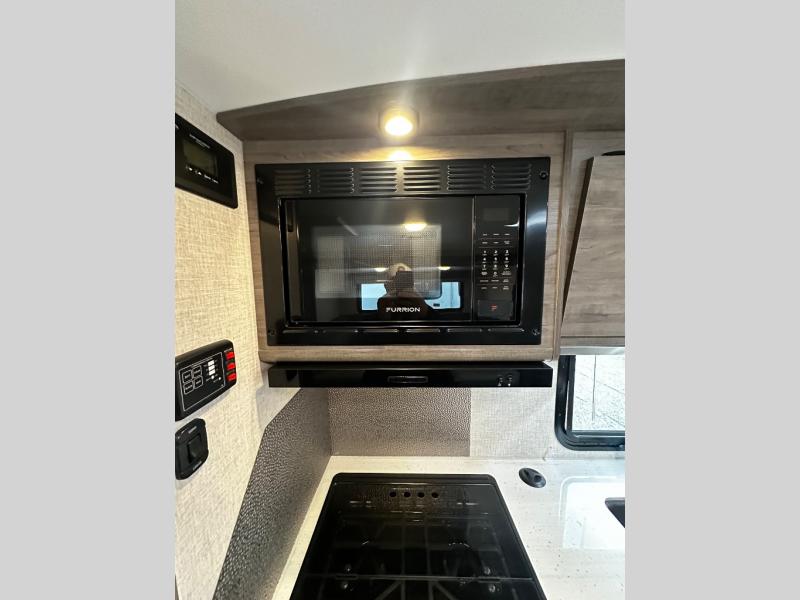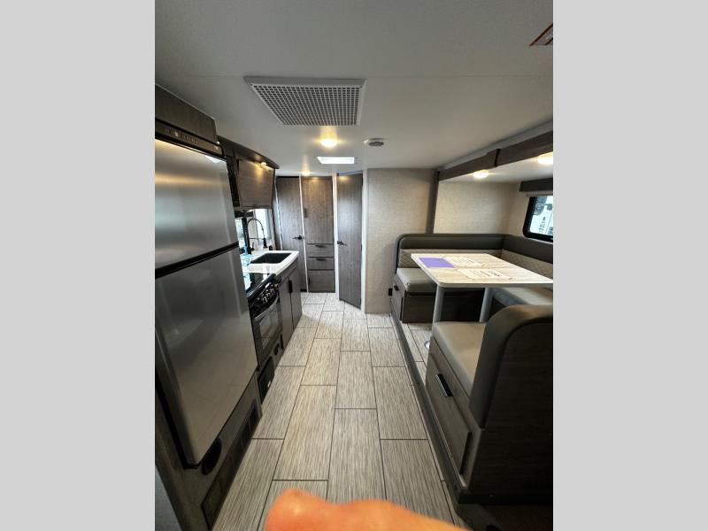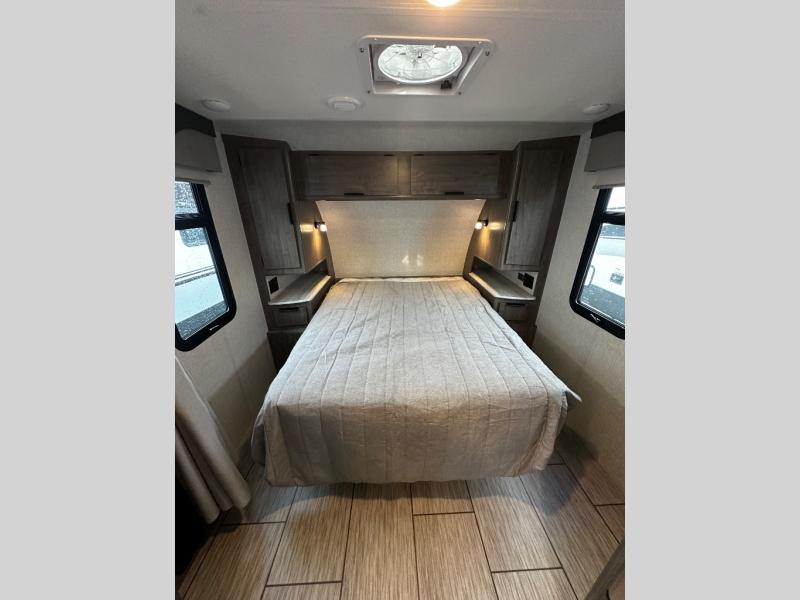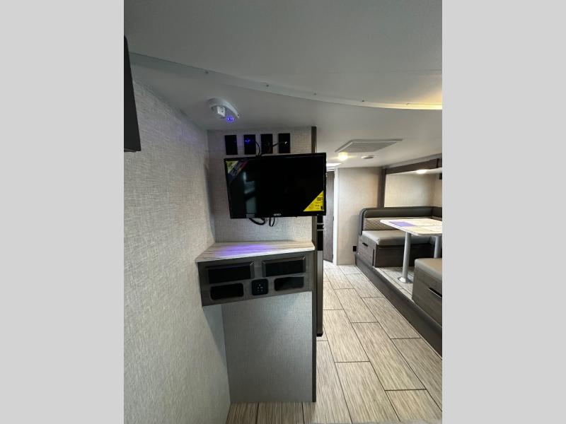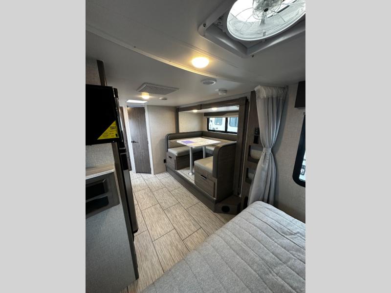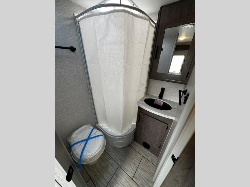 This travel trailer will be perfect for all your many camping excursions. You will enjoy having a walk-around queen bed up front with dual bedroom wardrobes on either side of the bed plus LED reading lights so you can stay up late with your book. A U-shaped dinette slide provides a place to dine and play games, and this can also double as sleeping space for guests. Having a full bath onboard means you won't have to use the camp's facilities at night, and the dual pane bath skylight will provide more natural light and extra headroom. When you've worked up an appetite, the galley includes a stainless steel three burner range with a black glass cover to cook meals and an 8 cu. ft. 12V refrigerator to keep leftovers fresh.