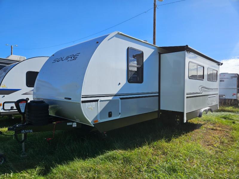 With any Squire travel trailer by Lance, you can count on high quality at an exceptional value! Each unit is built with a one-piece fully laminated roof and dual Azdel walls to extend the life of your RV. There are Slam Latch pass-through compartment doors, an exterior wash station, aluminum wheels with Goodyear radial tires, plus a manual tongue jack and manual stabilizer jacks to keep your travel trailer secure. The 12V/USB charging port(s) will keep your electronics charged up and the JBL AM/FM stereo will let you listen to your favorite tunes at the campground. Each travel trailer also includes decorative window valance boxes, solid surface countertops, hardwood framed cabinet doors, and decorative backsplash to name a few interior comforts. And don't forget to take a look at the available options to customize your Squire to best fit your needs!