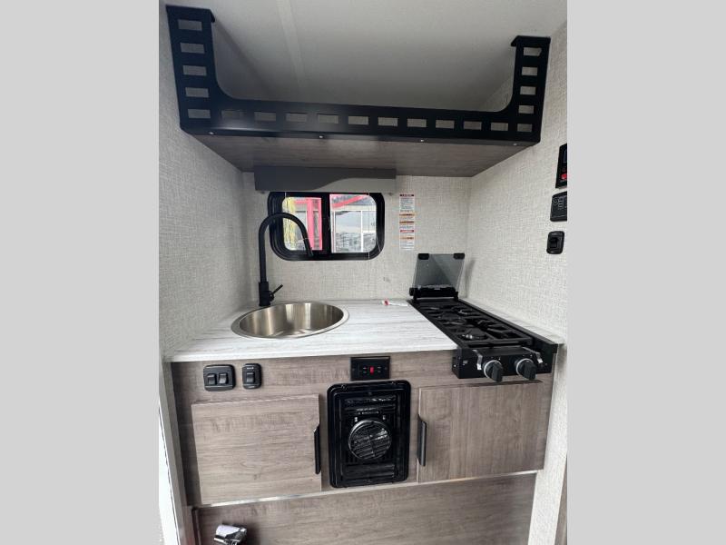 Simple camping has never been easier than with this truck camper designed for mid-size trucks! Once you've set up camp for the night, you can make dinner on the two burner cooktop, freshen up with the single round sink, and store leftovers in the 3.3 cu. ft. 12V refrigerator. The U-shaped dinette will provide a place to dine together and even let a guest or two stay over. A Porta-Potti comes standard so you don't have to leave your camper in the middle of the night, and you can choose to add the optional exterior zero shower that provides an enclosure for your exterior wash station!