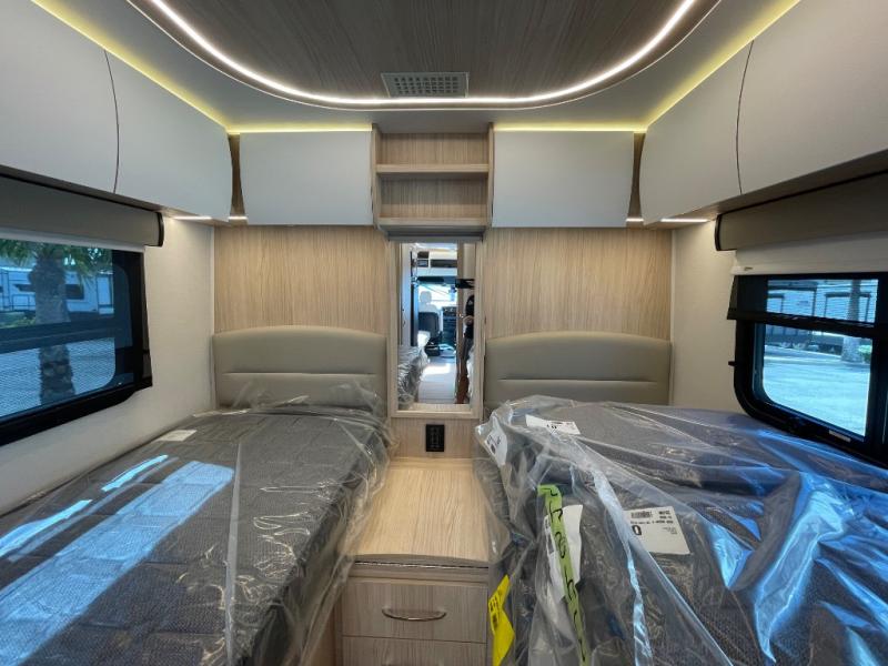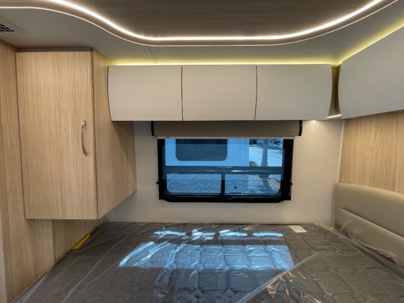Each Unity Class B+ diesel motorhome by Leisure Travel sits on a durable Mercedes-Benz Sprinter 3500 dual rear wheel chassis with a 2.0-L Turbocharged I-4 diesel engine to power your adventures. The powder coated steel undercarriage support structure and vacuum-bonded construction provide a coach that will last for years, and there are eight sleek exterior paint options to make the coach your own. You'll love driving the Unity with its electronic stability control, adaptive cruise control, 9-speed automatic transmission with quieter noise levels and more comfort. There is even a digital mirror with sharp high-resolution that can be switched between convectional display and digital display for convenience. The luxurious interior includes Ultraleather furniture, a contoured solid surface Corian countertop in the kitchen, new decor options, plus many more comforts. And all of your power need will be met with dual 100 ah, 12V Lithium coach batteries with an internal heating system, plus a 2000W pure sine inverter and a 30 Amp power cord. If you choose the optional 60th Anniversary Edition, you will enjoy the Diamond White exterior paint, diamond-quilted upholstery, Cool Ice Ultrafabrics, matte black hardware, and more elegant features that are exclusive to this package!