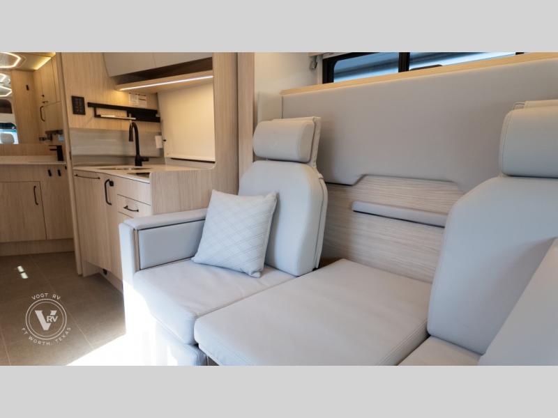 Each Unity Class B+ diesel motorhome by Leisure Travel sits on a durable Mercedes-Benz Sprinter 3500 dual rear wheel chassis with a 2.0-L Turbocharged I-4 diesel engine to power your adventures. The powder coated steel undercarriage support structure and vacuum-bonded construction provide a coach that will last for years, and there are eight sleek exterior paint options to make the coach your own. You'll love driving the Unity with its electronic stability control, adaptive cruise control, 9-speed automatic transmission with quieter noise levels and more comfort. There is even a digital mirror with sharp high-resolution that can be switched between convectional display and digital display for convenience. The luxurious interior includes Ultraleather furniture, a contoured solid surface Corian countertop in the kitchen, new decor options, plus many more comforts. And all of your power need will be met with dual 100 ah, 12V Lithium coach batteries with an internal heating system, plus a 2000W pure sine inverter and a 30 Amp power cord. If you choose the optional 60th Anniversary Edition, you will enjoy the Diamond White exterior paint, diamond-quilted upholstery, Cool Ice Ultrafabrics, matte black hardware, and more elegant features that are exclusive to this package!