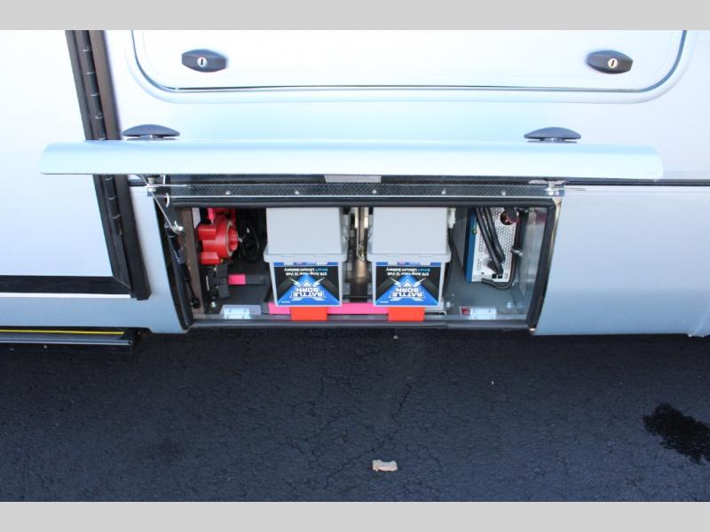 Traveling will be convenient and comfortable with this versatile Murphy bed and redesigned leisure lounge, which includes dual reclining chairs, an updated dinette table and a large panoramic window! At night, the lounge seating is hidden as you flip-down the Murphy bed for a comfortable night's rest. In the morning, tuck it all away to bring back your living space. You will also enjoy the convenient kitchen amenities in place so you can easily whip up a meal or snack while you are stopped, and for overnight you can get refreshed for a new day in the rear bath featuring a radius shower with a skylight, a sink, and closet space for your things.