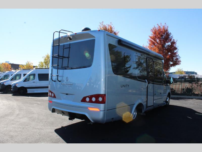 Each Unity Class B+ diesel motorhome by Leisure Travel sits on a durable Mercedes-Benz Sprinter 3500 dual rear wheel chassis with a 2.0-L Turbocharged I-4 diesel engine to power your adventures. The powder coated steel undercarriage support structure and vacuum-bonded construction provide a coach that will last for years, and there are eight sleek exterior paint options to make the coach your own. You'll love driving the Unity with its electronic stability control, adaptive cruise control, 9-speed automatic transmission with quieter noise levels and more comfort. There is even a digital mirror with sharp high-resolution that can be switched between convectional display and digital display for convenience. The luxurious interior includes Ultraleather furniture, a contoured solid surface Corian countertop in the kitchen, new decor options, plus many more comforts. And all of your power need will be met with 270-Ah, 12V Lithium coach batteries with an internal heating system, plus a 3000W pure sine inverter and a 30 Amp power cord. If you choose the optional 60th Anniversary Edition, you will enjoy the Diamond White exterior paint, diamond-quilted upholstery, Cool Ice Ultrafabrics, matte black hardware, and more elegant features that are exclusive to this package!
