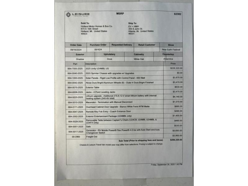 New 2025 Leisure Travel Unity U24MBL Motor Home Class B+ - Diesel