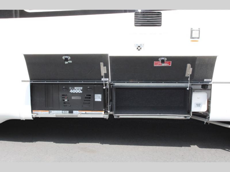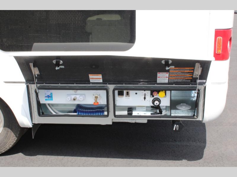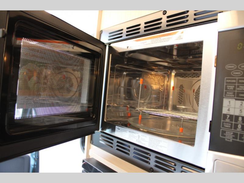 You will enjoy the two distinct living spaces with this Unity Class B+ diesel motorhome as you travel to all of your favorite locations. The dinette in front serves for dining and sleeping when converted into the optional front bed with the use of the front swivel captain's chairs for support. This is the perfect spot for when the grandchildren or guests come along. In back, you will find a comfortable lounge area with a 28" TV for inside entertainment plus a Murphy bed which easily converts the space into a bedroom that can be hidden away in the wall once morning arrives. The stainless steel convection microwave and the large pull-out pantry make it easy to create your delicious meals.