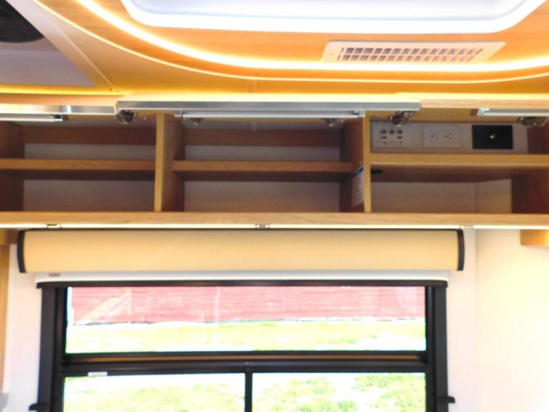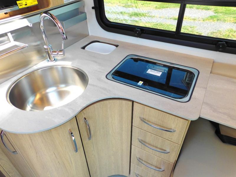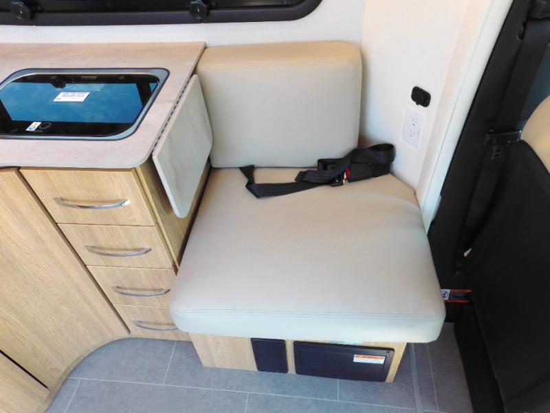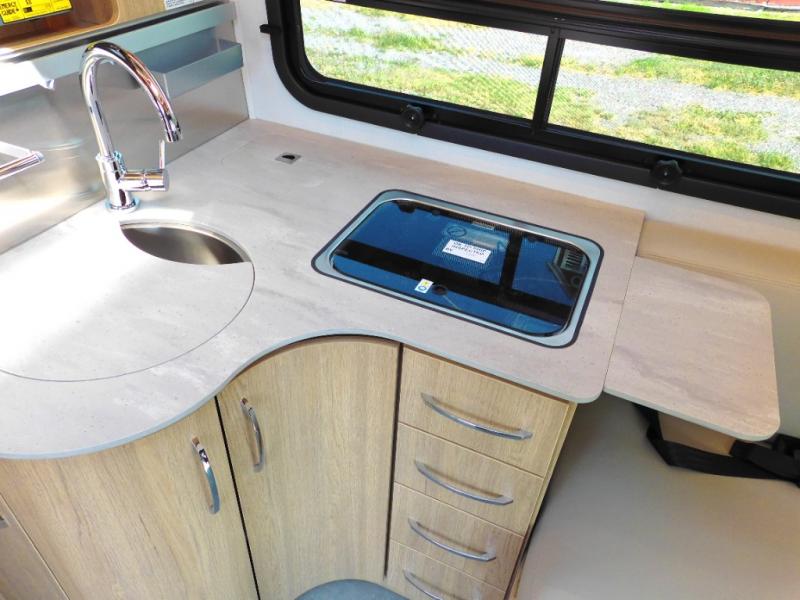Comfortable and versatile features allow you to travel the way you like in this Unity Class B+ diesel motorhome. You have plenty of choices on how you want to sleep and how you would like to dine. Each night, you can sleep separately from your spouse on one of the two twin-size beds or convert the twins into one king-size bed for more space together. Even the bathroom area is multi-functional because of its separate lavatory from the enclosed shower, and the adjustable front seating area is handy for dining, sleeping, or playing a card game with the family. The flush-mount LP cooktop makes it easy to make your delicious meals, and if you have any leftovers, then you can store them inside the 12V compressor refrigerator with a bottom freezer drawer.