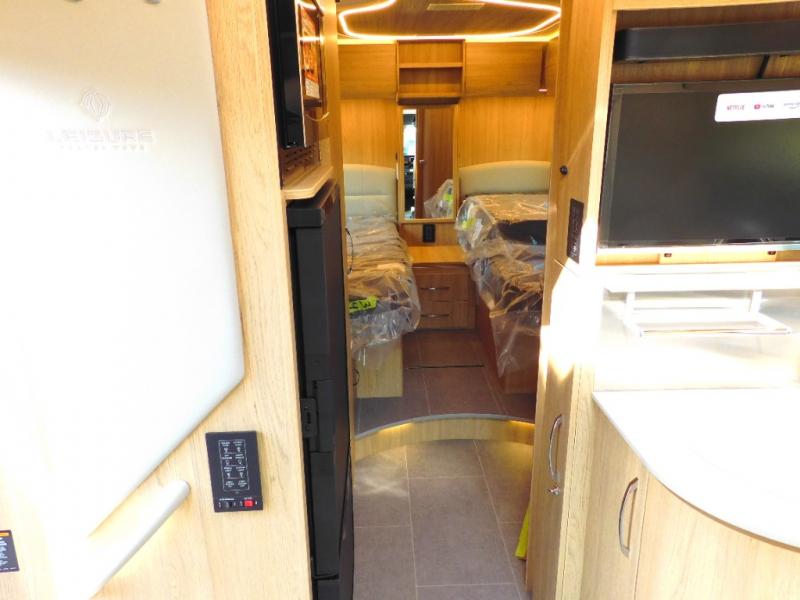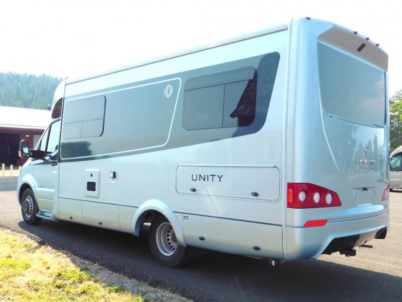 Each Unity Class B+ diesel motorhome by Leisure Travel sits on a durable Mercedes-Benz Sprinter 3500 dual rear wheel chassis with a 2.0-L Turbocharged I-4 diesel engine to power your adventures. The powder coated steel undercarriage support structure and vacuum-bonded construction provide a coach that will last for years, and there are eight sleek exterior paint options to make the coach your own. You'll love driving the Unity with its electronic stability control, adaptive cruise control, 9-speed automatic transmission with quieter noise levels and more comfort. There is even a digital mirror with sharp high-resolution that can be switched between convectional display and digital display for convenience. The luxurious interior includes Ultraleather furniture, a contoured solid surface Corian countertop in the kitchen, new decor options, plus many more comforts. And all of your power need will be met with 270-Ah, 12V Lithium coach batteries with an internal heating system, plus a 3000W pure sine inverter and a 30 Amp power cord. If you choose the optional 60th Anniversary Edition, you will enjoy the Diamond White exterior paint, diamond-quilted upholstery, Cool Ice Ultrafabrics, matte black hardware, and more elegant features that are exclusive to this package!