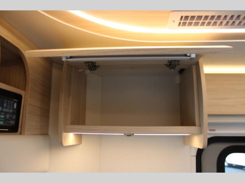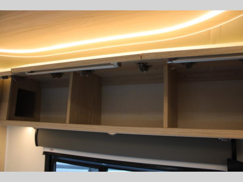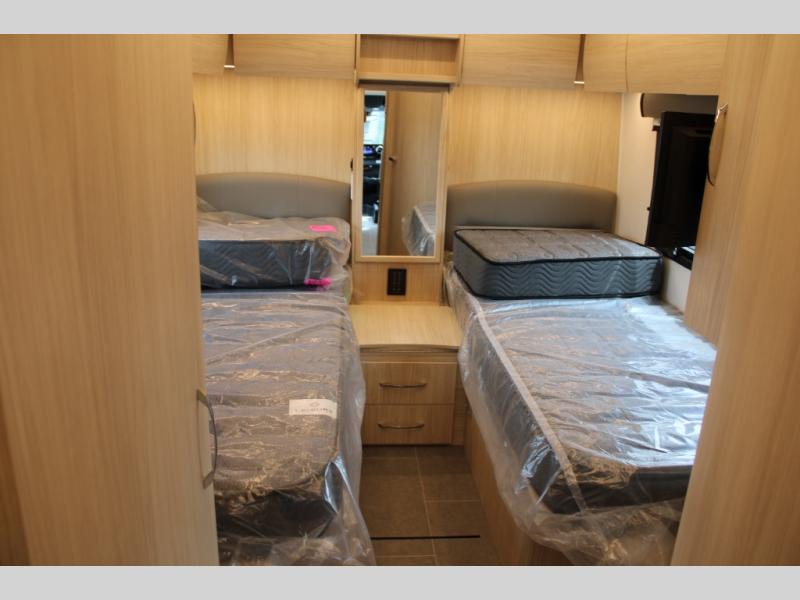 Comfortable and versatile features allow you to travel the way you like in this Unity Class B+ diesel motorhome. You have plenty of choices on how you want to sleep and how you would like to dine. Each night, you can sleep separately from your spouse on one of the two twin-size beds or convert the twins into one king-size bed for more space together. Even the bathroom area is multi-functional because of its separate lavatory from the enclosed shower, and the adjustable front seating area is handy for dining, sleeping, or playing a card game with the family. The flush-mount LP cooktop makes it easy to make your delicious meals, and if you have any leftovers, then you can store them inside the 12V compressor refrigerator with a bottom freezer drawer.