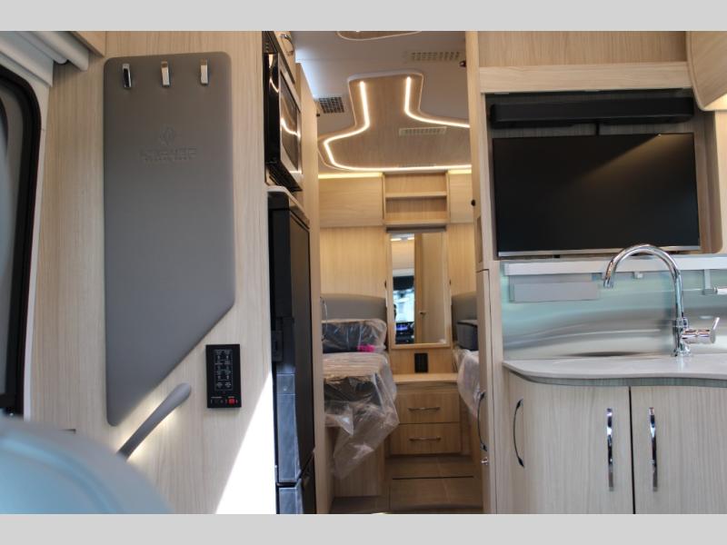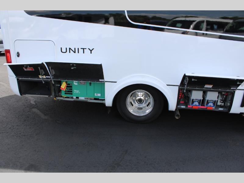 Each Unity Class B+ diesel motorhome by Leisure Travel sits on a durable Mercedes-Benz Sprinter 3500 dual rear wheel chassis with a 2.0-L Turbocharged I-4 diesel engine to power your adventures. The powder coated steel undercarriage support structure and vacuum-bonded construction provide a coach that will last for years, and there are eight sleek exterior paint options to make the coach your own. You'll love driving the Unity with its electronic stability control, adaptive cruise control, 9-speed automatic transmission with quieter noise levels and more comfort. There is even a digital mirror with sharp high-resolution that can be switched between convectional display and digital display for convenience. The luxurious interior includes Ultraleather furniture, a contoured solid surface Corian countertop in the kitchen, new decor options, plus many more comforts. And all of your power need will be met with 270-Ah, 12V Lithium coach batteries with an internal heating system, plus a 3000W pure sine inverter and a 30 Amp power cord. If you choose the optional 60th Anniversary Edition, you will enjoy the Diamond White exterior paint, diamond-quilted upholstery, Cool Ice Ultrafabrics, matte black hardware, and more elegant features that are exclusive to this package!