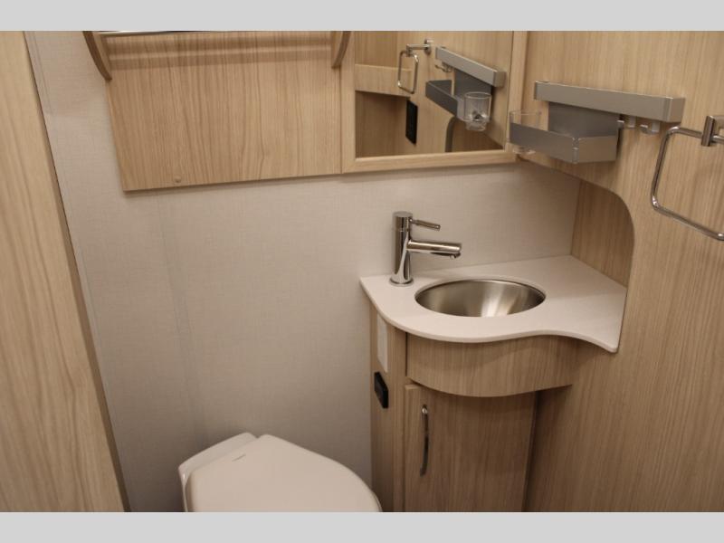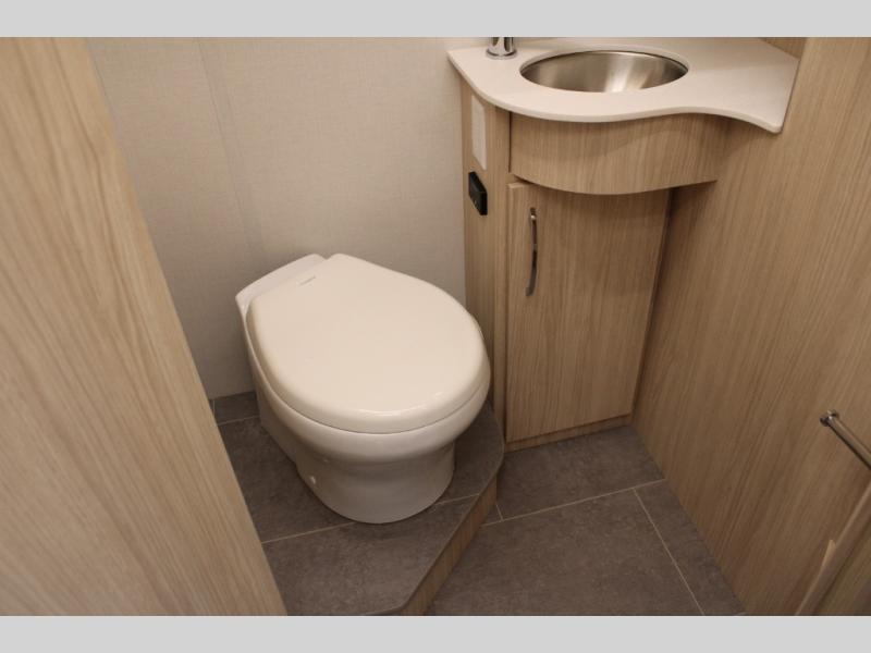 Comfortable and versatile features allow you to travel the way you like in this Unity Class B+ diesel motorhome. You have plenty of choices on how you want to sleep and how you would like to dine. Each night, you can sleep separately from your spouse on one of the two twin-size beds or convert the twins into one king-size bed for more space together. Even the bathroom area is multi-functional because of its separate lavatory from the enclosed shower, and the adjustable front seating area is handy for dining, sleeping, or playing a card game with the family. The flush-mount LP cooktop makes it easy to make your delicious meals, and if you have any leftovers, then you can store them inside the 12V compressor refrigerator with a bottom freezer drawer.