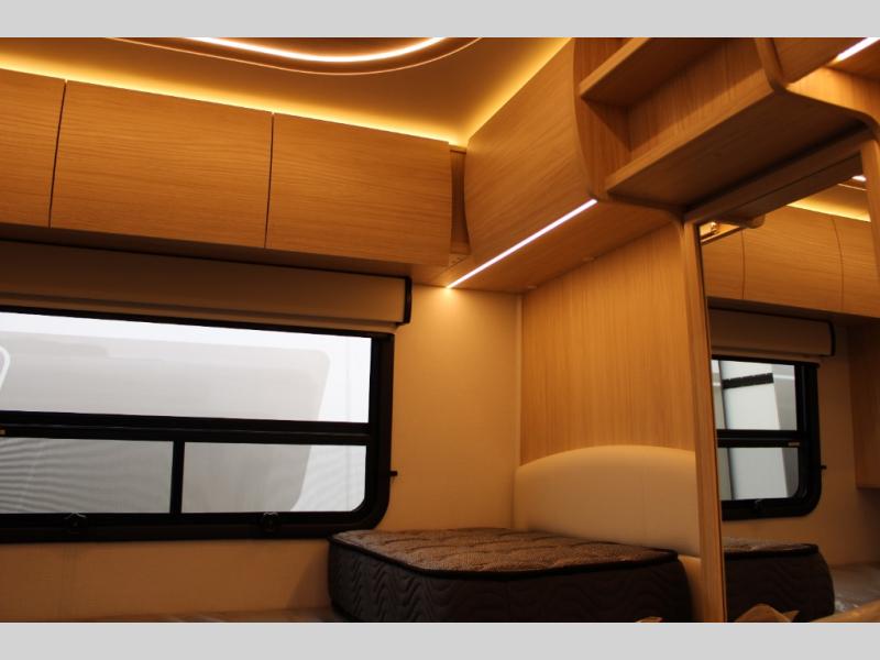 Each Unity Class B+ diesel motorhome by Leisure Travel sits on a durable Mercedes-Benz Sprinter 3500 dual rear wheel chassis with a 2.0-L Turbocharged I-4 diesel engine to power your adventures. The powder coated steel undercarriage support structure and vacuum-bonded construction provide a coach that will last for years, and there are eight sleek exterior paint options to make the coach your own. You'll love driving the Unity with its electronic stability control, adaptive cruise control, 9-speed automatic transmission with quieter noise levels and more comfort. There is even a digital mirror with sharp high-resolution that can be switched between convectional display and digital display for convenience. The luxurious interior includes Ultraleather furniture, a contoured solid surface Corian countertop in the kitchen, new decor options, plus many more comforts. And all of your power need will be met with 270-Ah, 12V Lithium coach batteries with an internal heating system, plus a 3000W pure sine inverter and a 30 Amp power cord. If you choose the optional 60th Anniversary Edition, you will enjoy the Diamond White exterior paint, diamond-quilted upholstery, Cool Ice Ultrafabrics, matte black hardware, and more elegant features that are exclusive to this package!