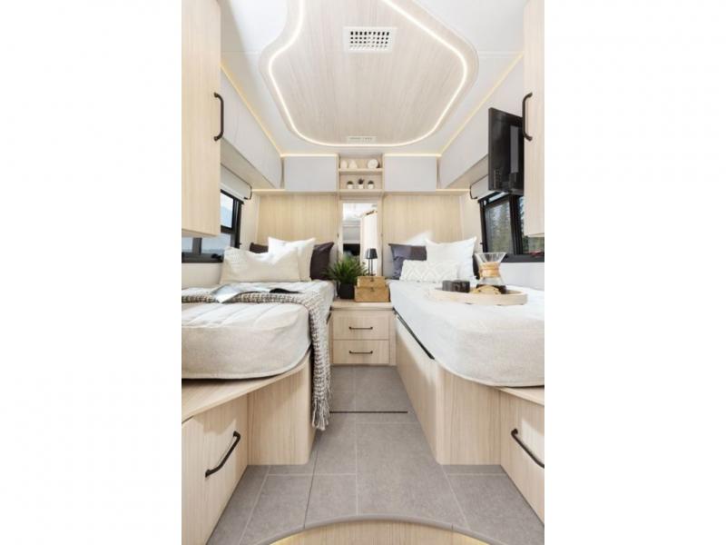 Each Unity Class B+ diesel motorhome by Leisure Travel sits on a durable Mercedes-Benz Sprinter 3500 dual rear wheel chassis with a 2.0-L Turbocharged I-4 diesel engine to power your adventures. The powder coated steel undercarriage support structure and vacuum-bonded construction provide a coach that will last for years, and there are eight sleek exterior paint options to make the coach your own. You'll love driving the Unity with its electronic stability control, adaptive cruise control, 9-speed automatic transmission with quieter noise levels and more comfort. There is even a digital mirror with sharp high-resolution that can be switched between convectional display and digital display for convenience. The luxurious interior includes Ultraleather furniture, a contoured solid surface Corian countertop in the kitchen, new decor options, plus many more comforts. And all of your power need will be met with dual 100 ah, 12V Lithium coach batteries with an internal heating system, plus a 2000W pure sine inverter and a 30 Amp power cord. If you choose the optional 60th Anniversary Edition, you will enjoy the Diamond White exterior paint, diamond-quilted upholstery, Cool Ice Ultrafabrics, matte black hardware, and more elegant features that are exclusive to this package!