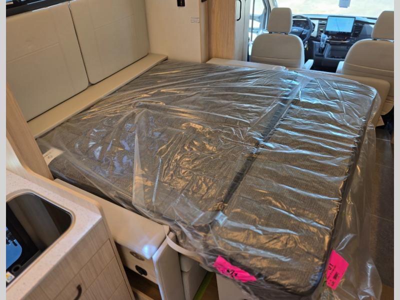 With any Leisure Travel Wonder Class B+ gas motorhome, the construction includes vacuum bonded aluminum framed insulated contoured sidewalls and a domed roof with fiberglass exterior, and a floor with composite exterior on a Ford Transit dual rear wheel chassis. Some highlights include the 16" heavy-duty forged aluminum alloy wheels, the auto high-beam headlamps, and the advance active safety features. The interior offers the SYNC 4 navigation system, curved soft close overhead cabinetry doors with hidden catches, full extension ball bearing soft close drawer tracks, LED aisle lighting and above cabinet hidden accent lights, and tile look vinyl flooring throughout for style and easy care. Optional AWD is available, along with the optional 60th Anniversary Edition decor and exterior color, solar panels for off-grid capability, a battery upgrade, and more!