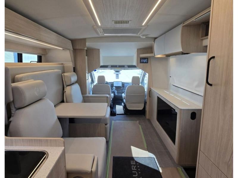With any Leisure Travel Wonder Class B+ gas motorhome, the construction includes vacuum bonded aluminum framed insulated contoured sidewalls and a domed roof with fiberglass exterior, and a floor with composite exterior on a Ford Transit dual rear wheel chassis. Some highlights include the 16" heavy-duty forged aluminum alloy wheels, the auto high-beam headlamps, and the advance active safety features. The interior offers the SYNC 4 navigation system, curved soft close overhead cabinetry doors with hidden catches, full extension ball bearing soft close drawer tracks, LED aisle lighting and above cabinet hidden accent lights, and tile look vinyl flooring throughout for style and easy care. Optional AWD is available, along with the optional 60th Anniversary Edition decor and exterior color, solar panels for off-grid capability, a battery upgrade, and more!