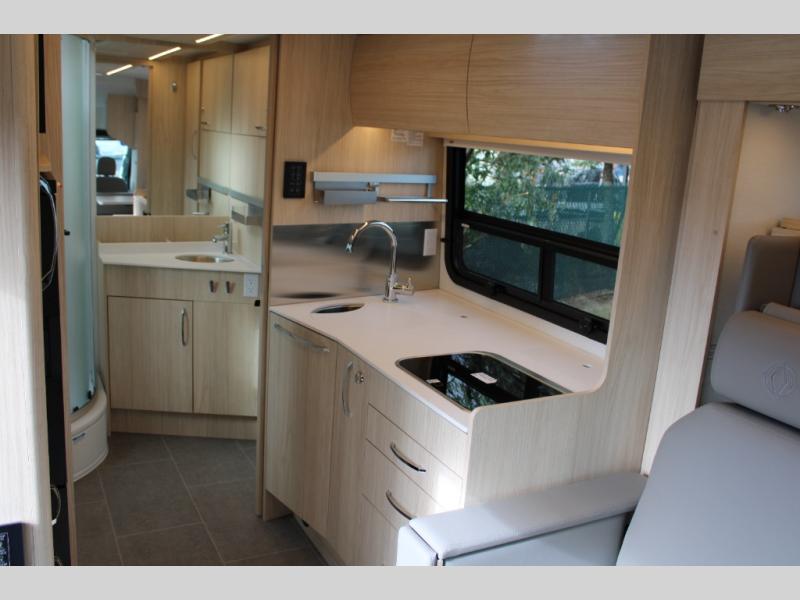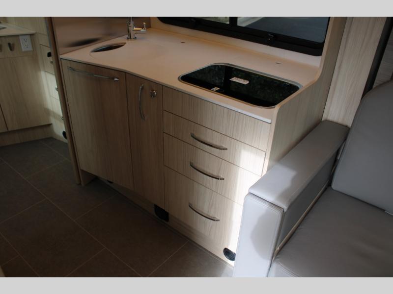 Wonder's first slide out coach is here with this 24MBL! You will find that the Murphy bed will provide a great night's rest each night, and the full bath will allow you to clean up each morning. The Leisure Lounge System features a dinette with two power recliners and an easy lift table when the bed is put away. The swivel captain's seats can turn around to become part of the living area during the day, and you'll find plenty of storage space throughout for all your belongings. The galley includes a convection microwave, a flush mount LP cooktop, plus a convenient garbage can and stainless steel backsplash for easy clean-up.