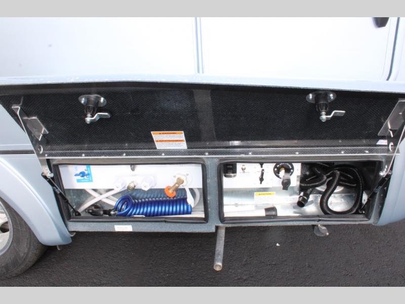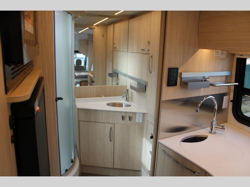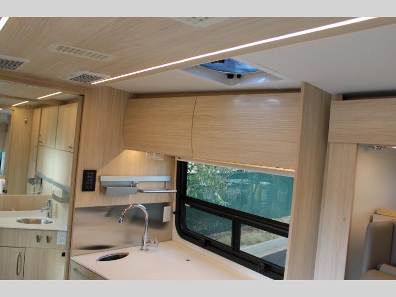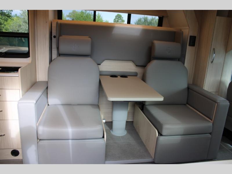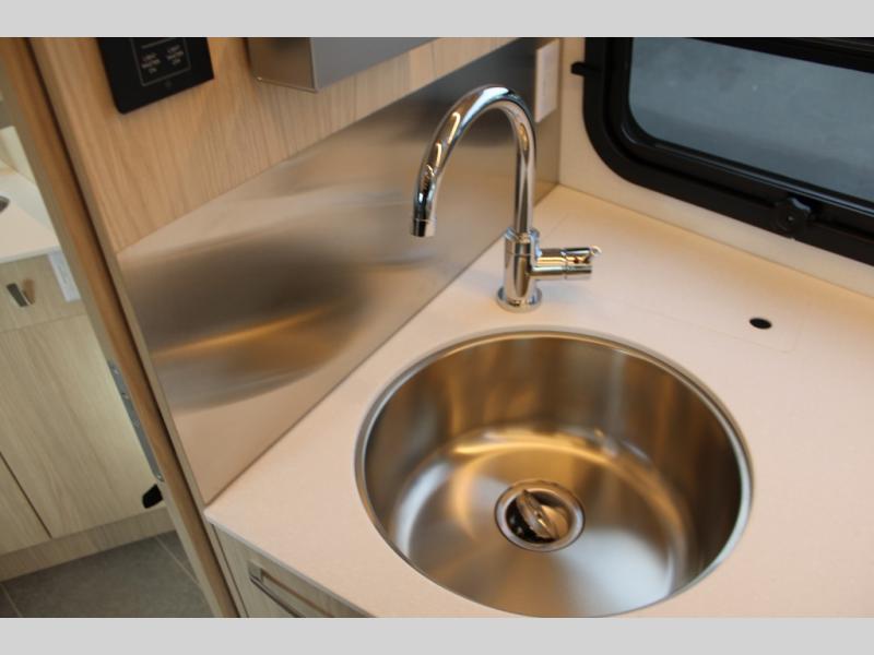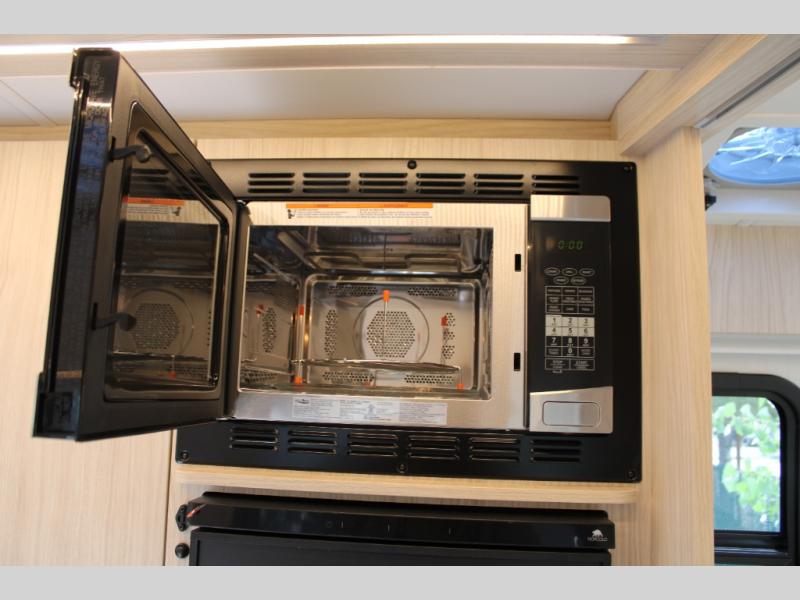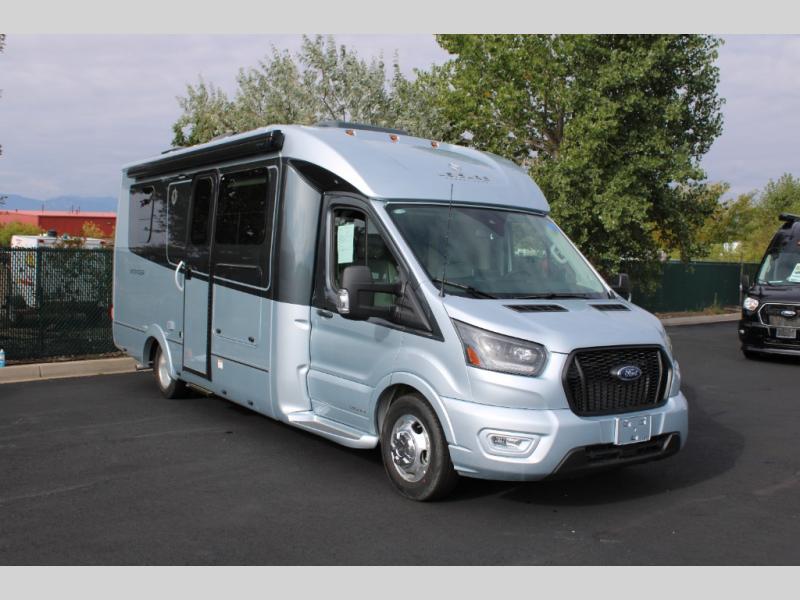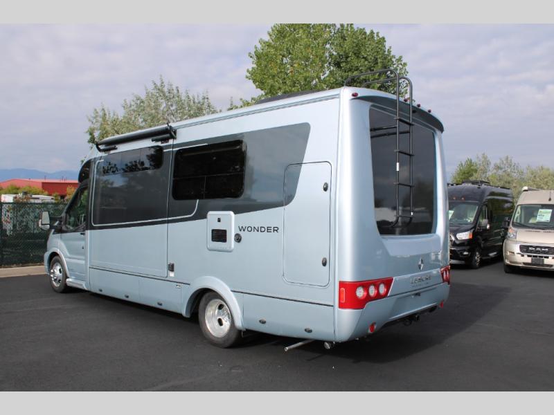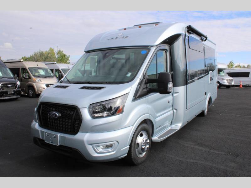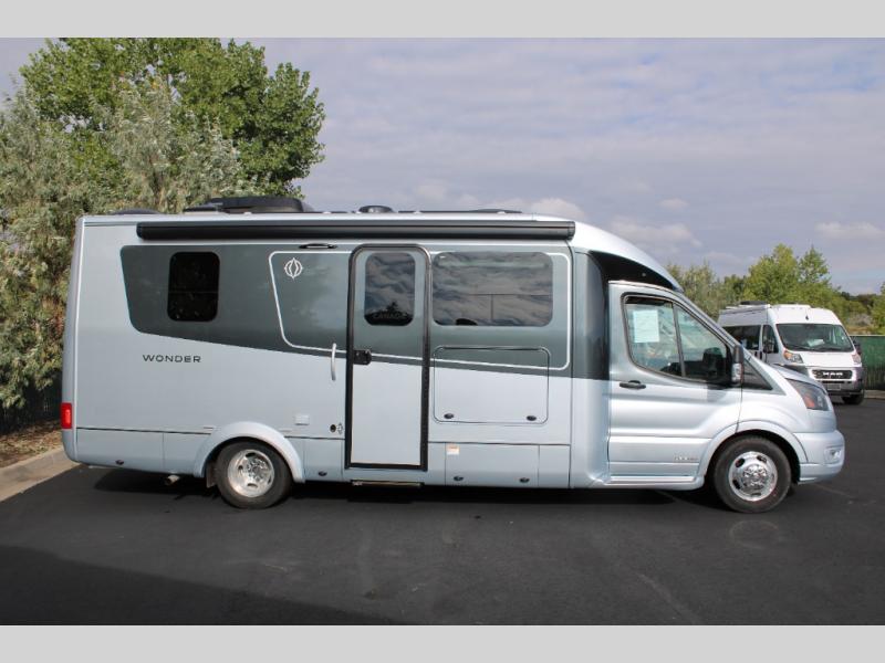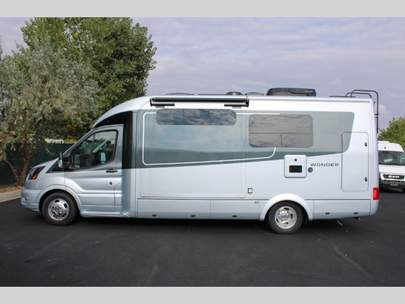 With any Leisure Travel Wonder Class B+ gas motorhome, the construction includes vacuum bonded aluminum framed insulated contoured sidewalls and a domed roof with fiberglass exterior, and a floor with composite exterior on a Ford Transit dual rear wheel chassis. Some highlights include the 16" heavy-duty forged aluminum alloy wheels, the auto high-beam headlamps, and the advance active safety features. The interior offers the SYNC 4 navigation system, curved soft close overhead cabinetry doors with hidden catches, full extension ball bearing soft close drawer tracks, LED aisle lighting and above cabinet hidden accent lights, and tile look vinyl flooring throughout for style and easy care. Optional AWD is available, along with the optional 60th Anniversary Edition decor and exterior color, solar panels for off-grid capability, a battery upgrade, and more!