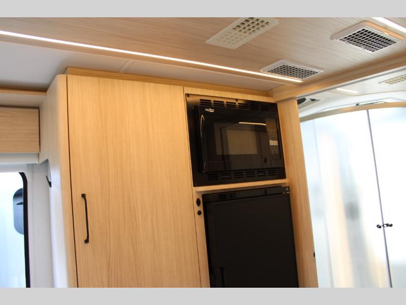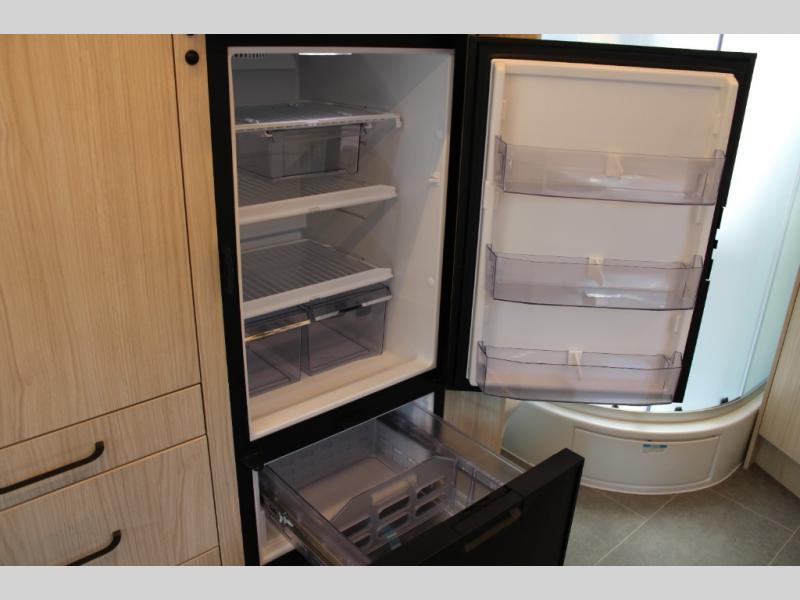 The slide out in this coach will give you plenty of space to relax! You will find that the Murphy bed will provide a great night's rest each night, and the full bath will allow you to clean up each morning. The redesigned Leisure Lounge System features dual reclining chairs, an updated dinette table system, and a panoramic window for great outdoor views. The swivel captain's seats can turn around to become part of the living area during the day, and you'll find plenty of storage space throughout for all your belongings. The galley includes a convection microwave, a flush mount LP cooktop, plus a convenient garbage can and stainless steel backsplash for easy clean-up.