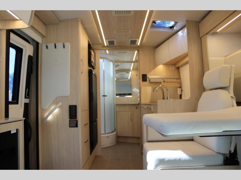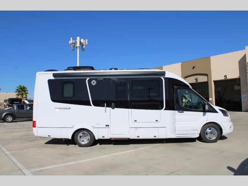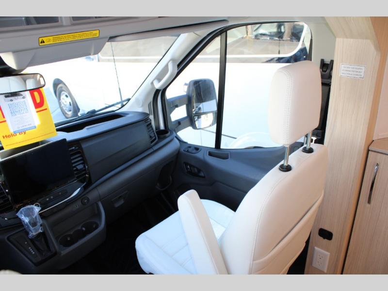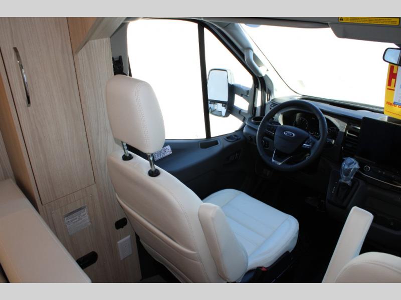 With any Leisure Travel Wonder Class B+ gas motorhome, the construction includes vacuum bonded aluminum framed insulated contoured sidewalls and a domed roof with fiberglass exterior, and a floor with composite exterior on a Ford Transit dual rear wheel chassis. Some highlights include the 16" heavy-duty forged aluminum alloy wheels, the auto high-beam headlamps, and the advance active safety features. The interior offers the SYNC 4 navigation system, curved soft close overhead cabinetry doors with hidden catches, full extension ball bearing soft close drawer tracks, LED aisle lighting and above cabinet hidden accent lights, and tile look vinyl flooring throughout for style and easy care. Optional AWD is available, along with the optional 60th Anniversary Edition decor and exterior color, solar panels for off-grid capability, a battery upgrade, and more!