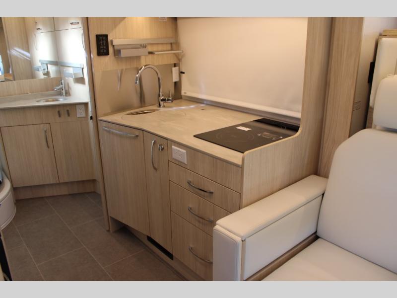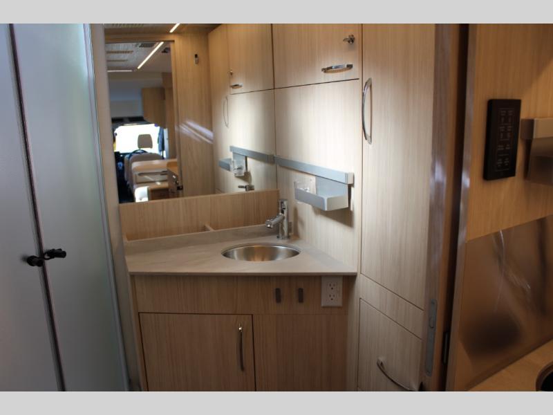 The slide out in this coach will give you plenty of space to relax! You will find that the Murphy bed will provide a great night's rest each night, and the full bath will allow you to clean up each morning. The redesigned Leisure Lounge System features dual reclining chairs, an updated dinette table system, and a panoramic window for great outdoor views. The swivel captain's seats can turn around to become part of the living area during the day, and you'll find plenty of storage space throughout for all your belongings. The galley includes a convection microwave, a flush mount LP cooktop, plus a convenient garbage can and stainless steel backsplash for easy clean-up.