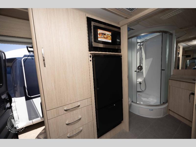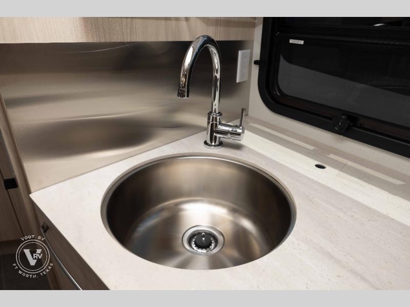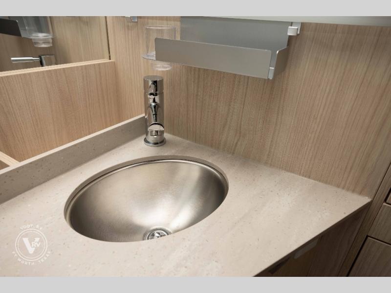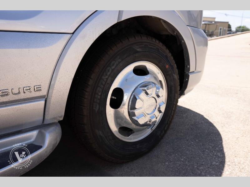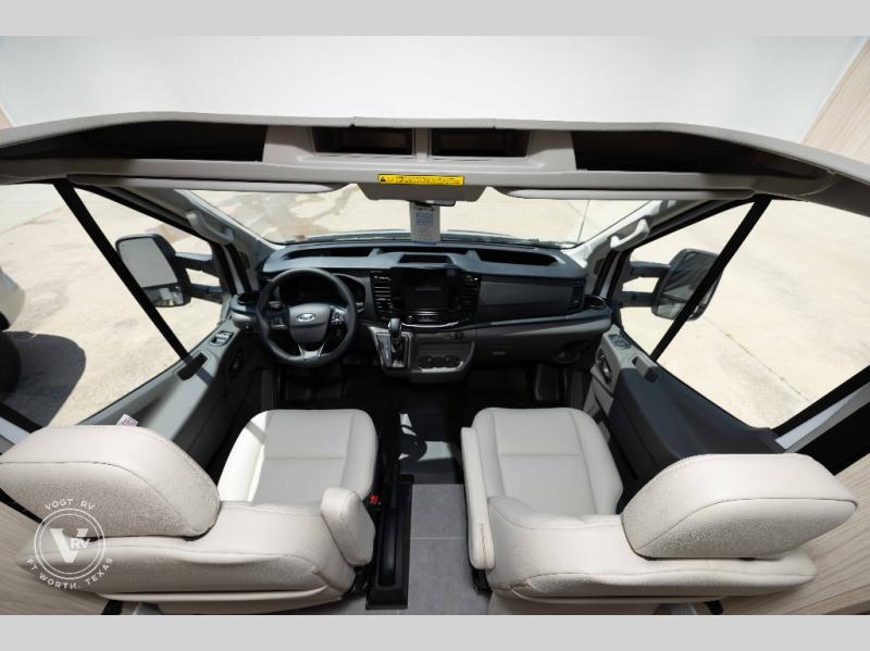 With any Leisure Travel Wonder Class B+ gas motorhome, the construction includes vacuum bonded aluminum framed insulated contoured sidewalls and a domed roof with fiberglass exterior, and a floor with composite exterior on a Ford Transit dual rear wheel chassis. Some highlights include the 16" heavy-duty forged aluminum alloy wheels, the auto high-beam headlamps, and the advance active safety features. The interior offers the SYNC 4 navigation system, curved soft close overhead cabinetry doors with hidden catches, full extension ball bearing soft close drawer tracks, LED aisle lighting and above cabinet hidden accent lights, and tile look vinyl flooring throughout for style and easy care. Optional AWD is available, along with the optional 60th Anniversary Edition decor and exterior color, solar panels for off-grid capability, a battery upgrade, and more!
