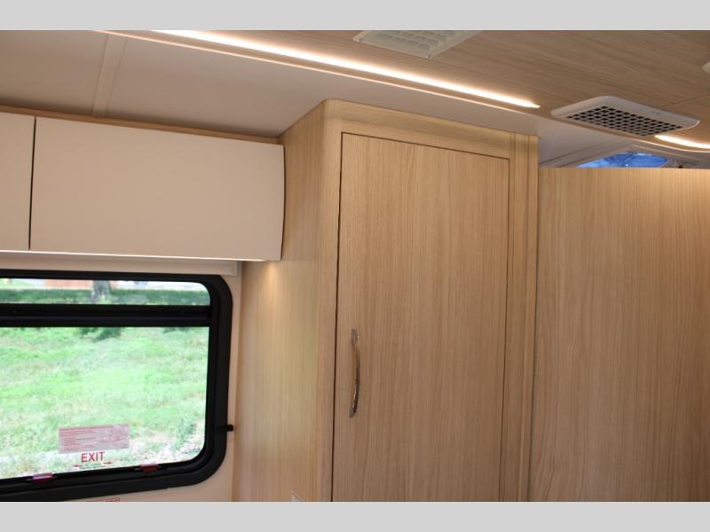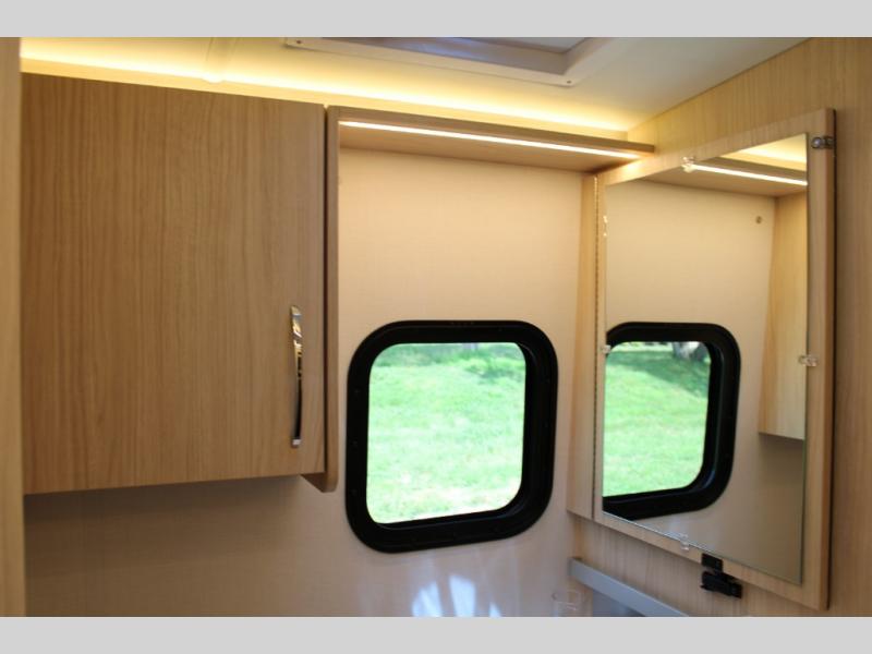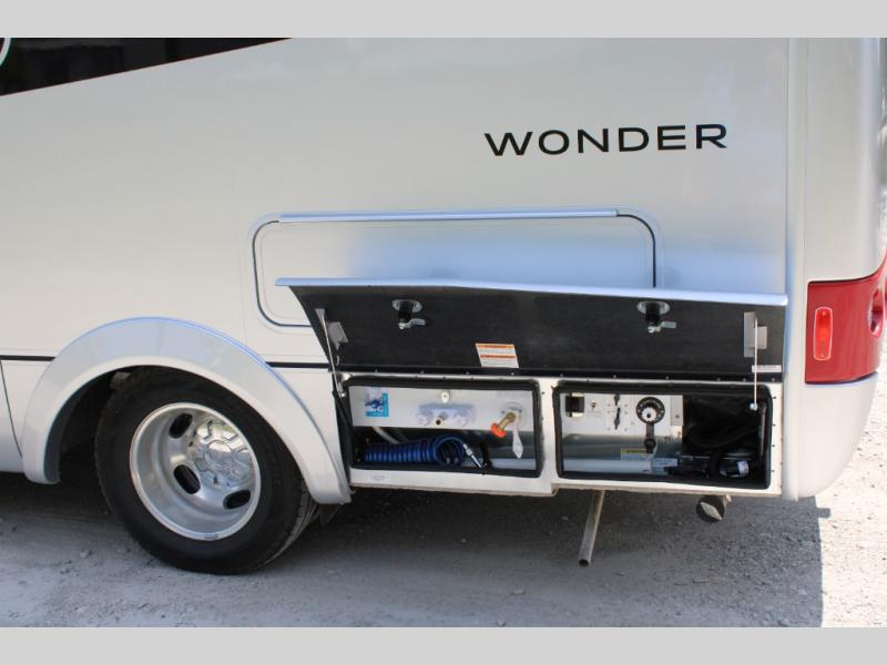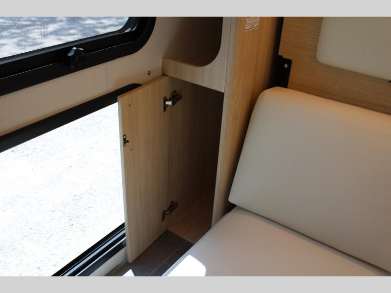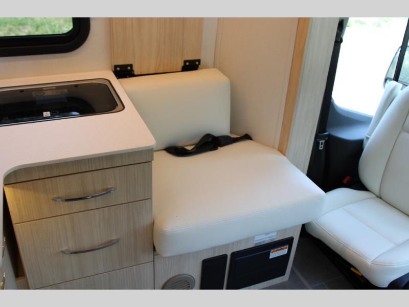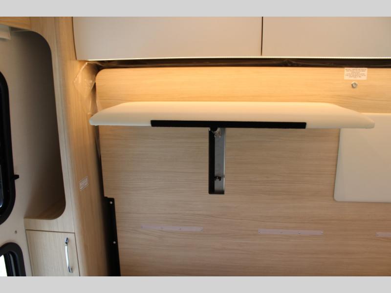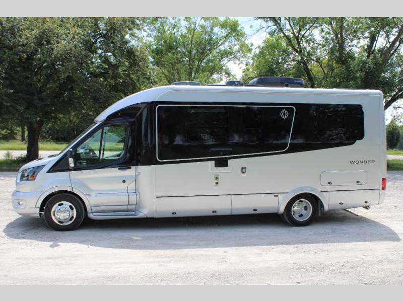 With any Leisure Travel Wonder Class B+ gas motorhome, the construction includes vacuum bonded aluminum framed insulated contoured sidewalls and a domed roof with fiberglass exterior, and a floor with composite exterior on a Ford Transit dual rear wheel chassis. Some highlights include the 16" heavy-duty forged aluminum alloy wheels, the auto high-beam headlamps, and the advance active safety features. The interior offers the SYNC 4 navigation system, curved soft close overhead cabinetry doors with hidden catches, full extension ball bearing soft close drawer tracks, LED aisle lighting and above cabinet hidden accent lights, and tile look vinyl flooring throughout for style and easy care. Optional AWD is available, along with the optional 60th Anniversary Edition decor and exterior color, solar panels for off-grid capability, a battery upgrade, and more!