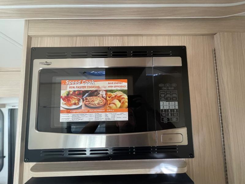 This coach combines comfort with versatility and convenience allowing you to travel wherever and whenever you want with your three favorite people! You will find seatbelts for four, a rear Murphy bed, and a removable front dinette area with an optional bed to sleep four. The rear offers a residential-style sectional lounge sofa with footrests and a swivel table to create a work station or another dining space. The galley offers a flip-down extension for more prep and serving space, a convection microwave oven, a flush mount LP cooktop with hinged glass cover, a garbage can, a pull-out pantry, and more to enjoy cooking while on the go.