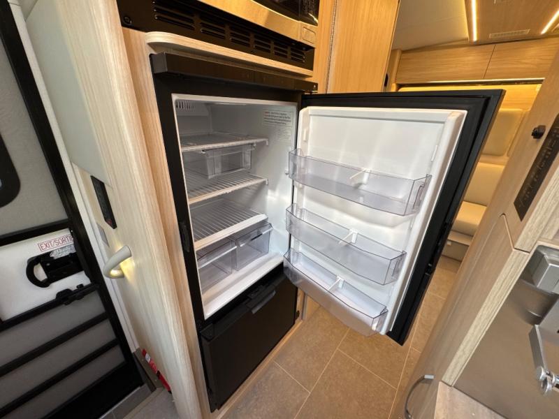 This coach combines comfort with versatility and convenience allowing you to travel wherever and whenever you want with your three favorite people! You will find seatbelts for four, a rear Murphy bed, and a removable front dinette area with an optional bed to sleep four. The rear offers a residential-style sectional lounge sofa with footrests and a swivel table to create a work station or another dining space. The galley offers a flip-down extension for more prep and serving space, a convection microwave oven, a flush mount LP cooktop with hinged glass cover, a garbage can, a pull-out pantry, and more to enjoy cooking while on the go.