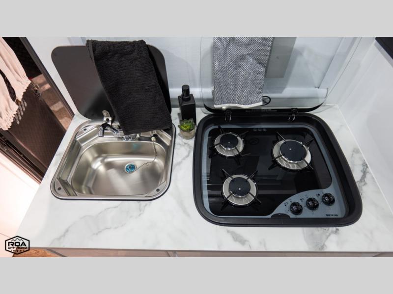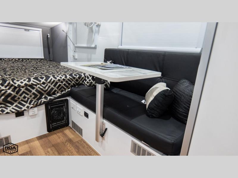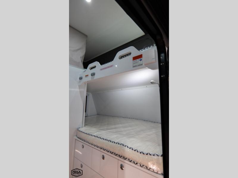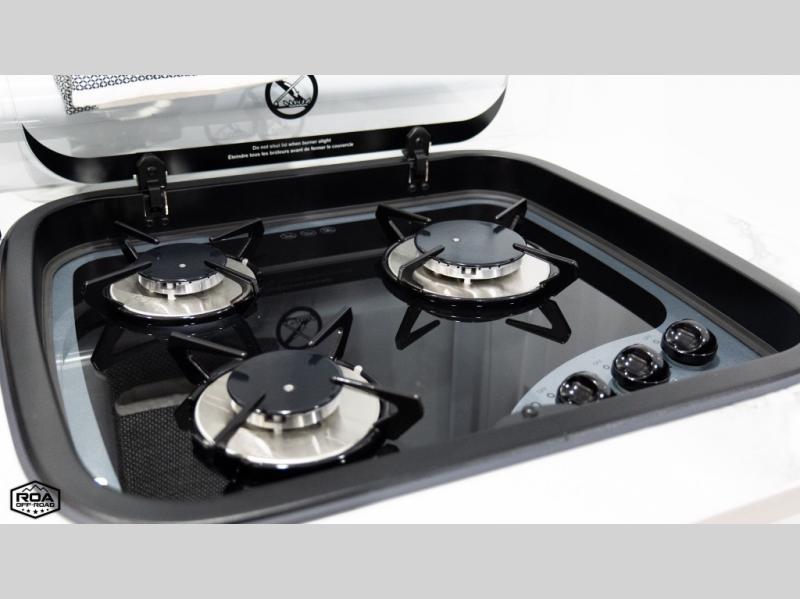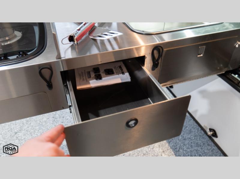 Experience the ultimate comfort and quality with your family of four in this off-road trailer! With a Dometic Penguin II high efficiency low profile rooftop air conditioner, you will stay cool on a hot summer day and the Dometic DFSD 12111 furnace will keep you warm on a cool evening. Everyone will get a good night's rest between the queen bed and the twin XL foam bunk beds, plus the convertible dinette can be used as a sleeping space when you aren't using it to enjoy a meal prepared with either the indoor two burner cooktop or the exterior three burner cooktop. The hot and cold plumbed wet bath allows you to clean up after a fun day at the beach!