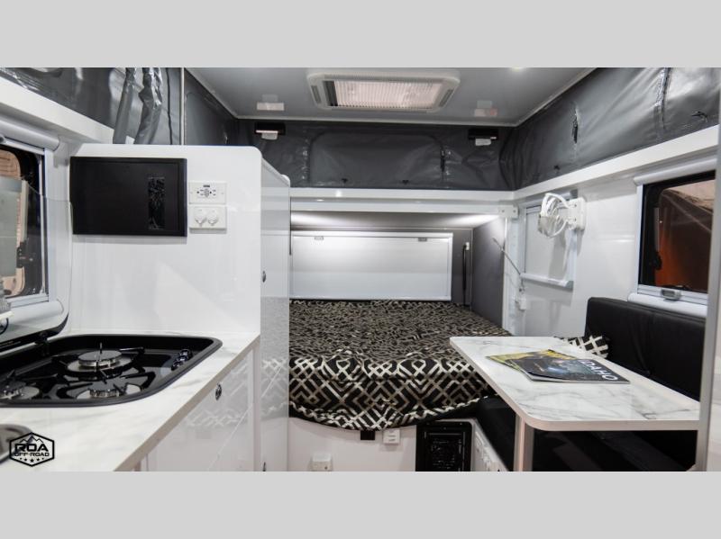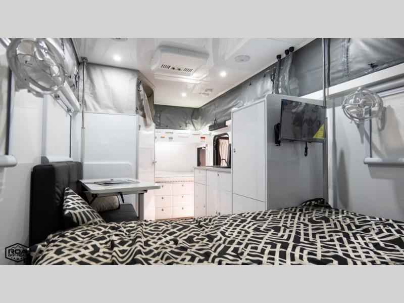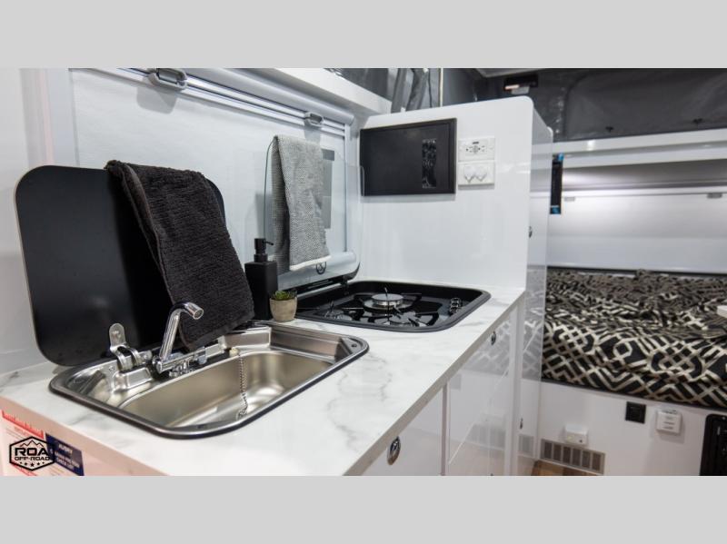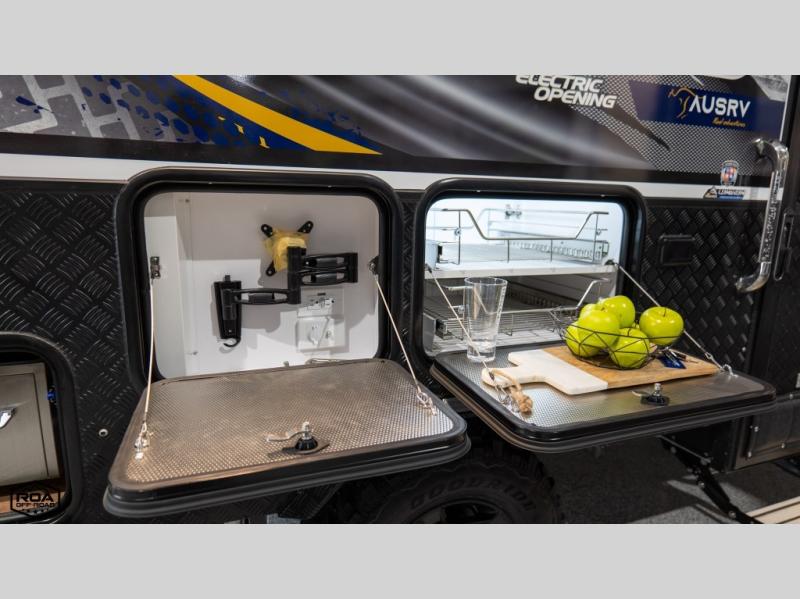 The AUSRV off-road trailer by MDC USA is packed with features while still priced at an affordable amount! You can tackle tough terrain thanks to the X-TRACK independent coil suspension with 2x TOUGH TRAX shock absorbers on each side. Plus the aluminum frame and composite body construction is ultra durable so you make camping memories for years to come. The Cold Weather Pack includes tank heating pads, an HWS electric anti-freeze kit, plus LiFePRO+ integrated heating and insulated water lines to help extend your camping season. There are internal and external power outlets, 700 watts of solar power, a 2000W inverter, plus more amenities that will keep you powered up!