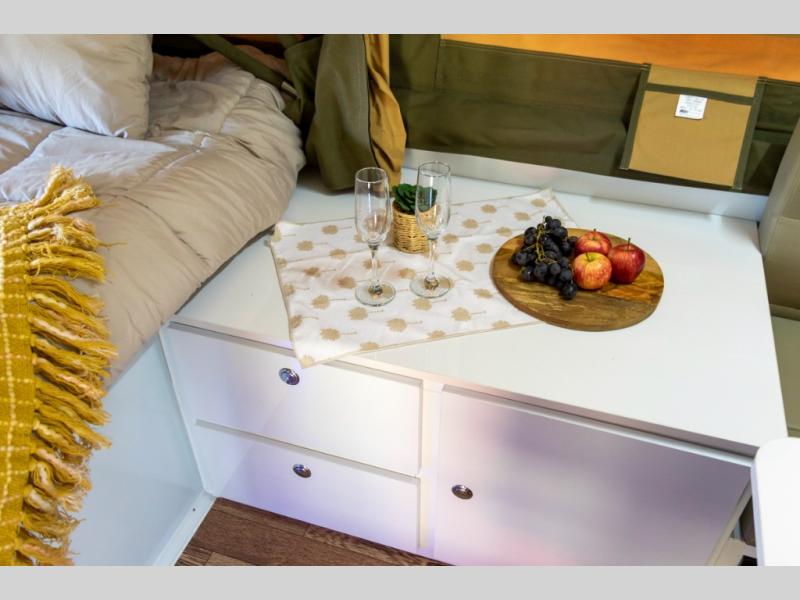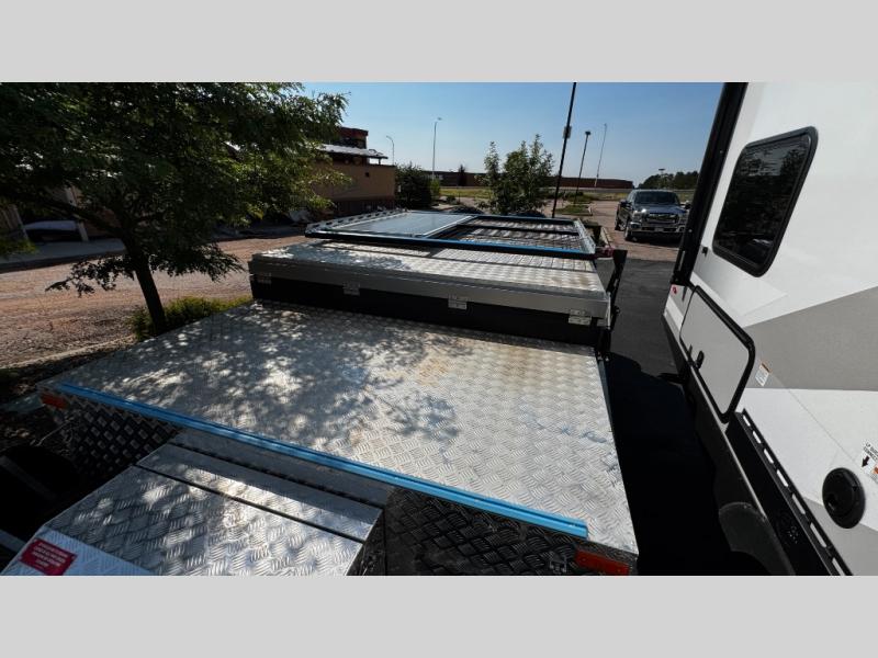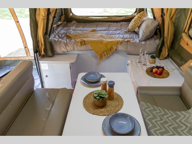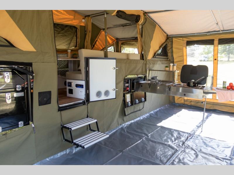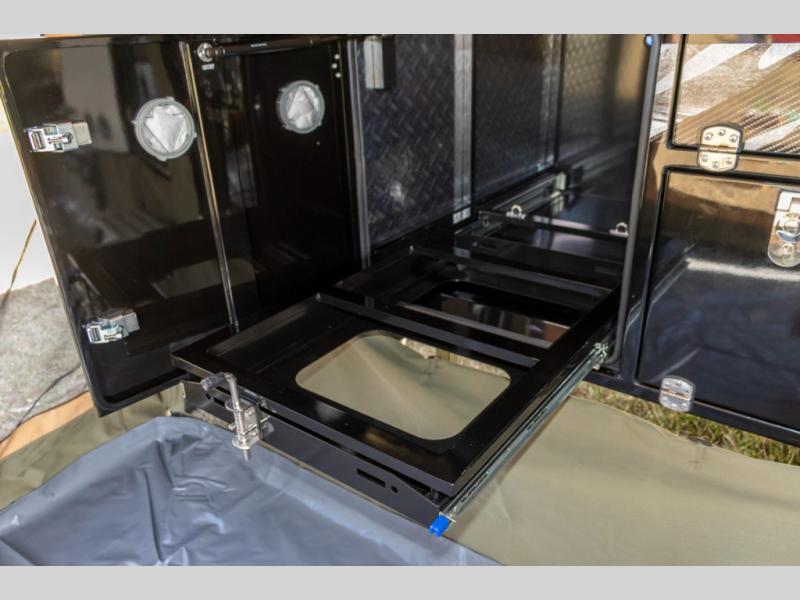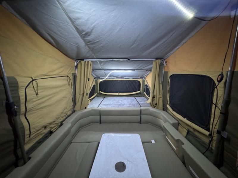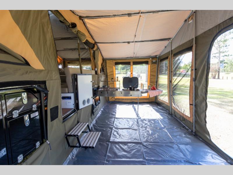 Take your adventures up a notch with the Expedition Series pop-up off-road trailers by MDC USA! Each one is built with a durable welded aluminum alloy frame with bonded composite panels for added strength. You can go off the beaten path with Goodride MT tires with two spares, 12" electromagnetic brakes, and X-TRACK independent coil spring suspension with 2X TOUGH TRAX shock absorbers on each side. The tent and annex offers up to 301 sq. ft. of living space between the main tent and fully enclosed annex so you can enjoy more room to relax. Outside, you'll find a removable, side-mounted storage rack, solar power, plus external power outlets to keep you going!