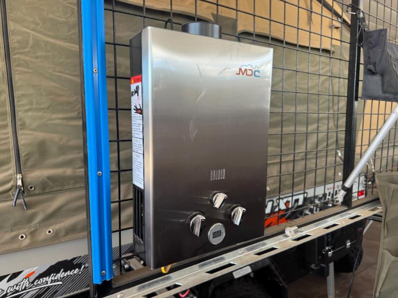 You can sleep six in this trailer since there is a queen-size bed, full-size bed, plus a convertible lounge! There is a slide out stainless steel gas cooktop and washboard sink with plumbed hot and cod water supply, pus two refrigerator side outs to keep food fresh. And the 5 gallon portable is sure to come in handy when you're camping off-grid!