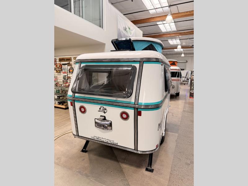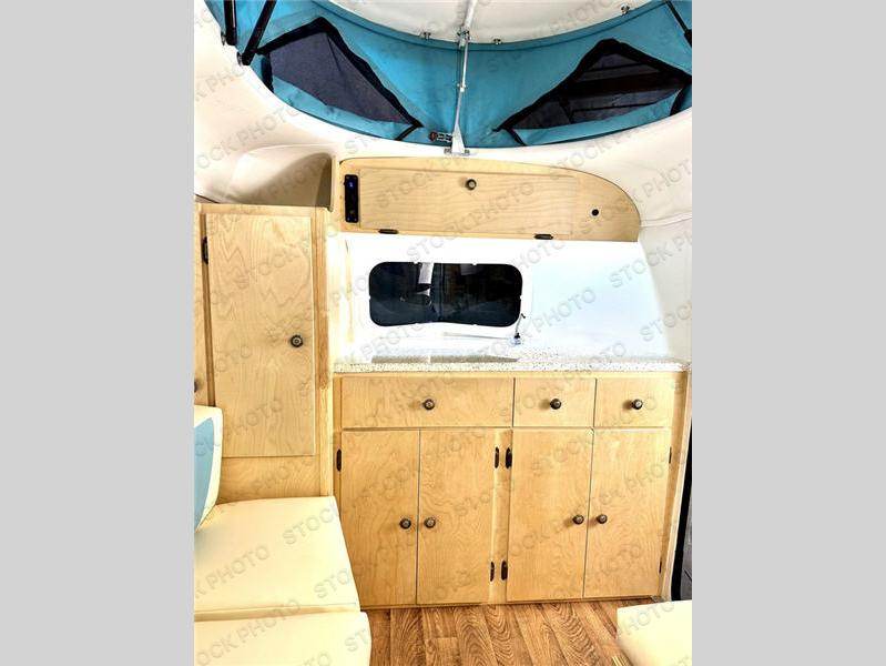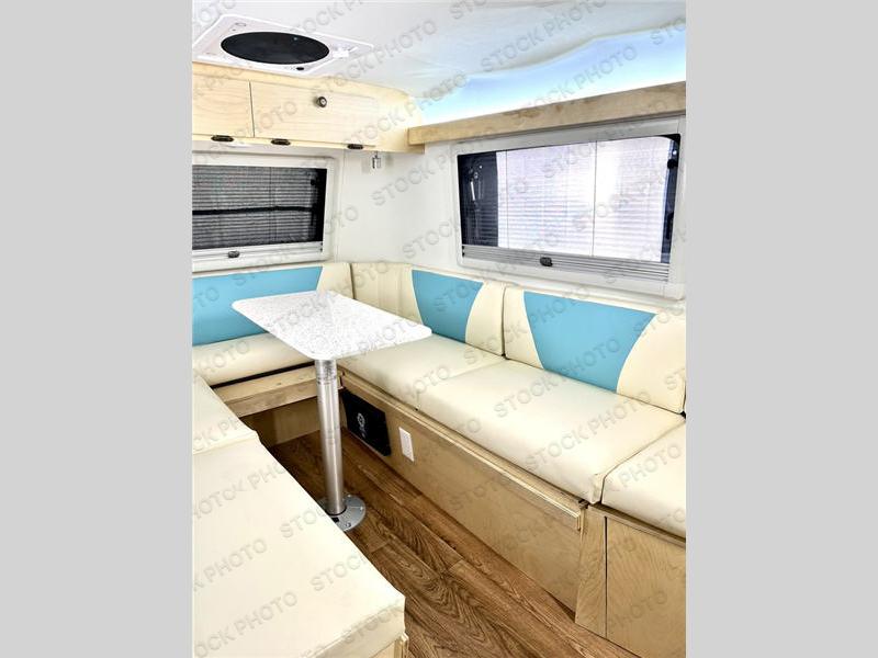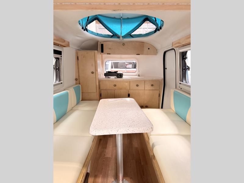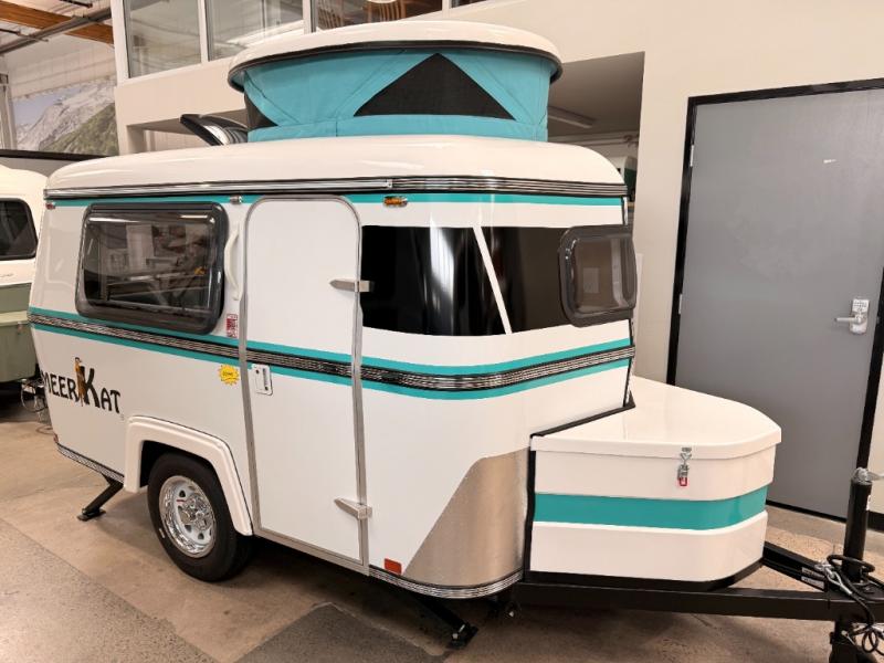 Bigger is not always better, and this little MeerKat will prove that to any interested camping couple that is looking to tow behind their everyday car. The MeerKat provides you a step up from tent camping where you can enjoy a dry place to sleep, eat, and store your things easily. And the included porta potty allows you to skip the public facilities in the middle of the night. The dinette table and wrap around seating can easily transform into a bed for a comfortable night's sleep. Three opening windows will allow you to enjoy fresh air circulating throughout both day and night. You will find under seating storage, plus several cabinets to tuck your things out of sight when not in use, and the front countertop provides a handy sink, plus a one burner camp stove is also available along with an icebox for your perishables. The MeerKat can easily be customized to suit your style of camping. You can add an optional awning, front storage box for more gear, a refrigerator, or induction cooktop, plus more. It's time to check this tiny camper out!