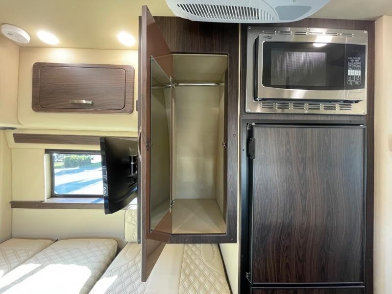 Forget about the way that you used to travel and begin traveling like a pro with this Ford Passage Class B gas motorhome! This coach has it all! You will find a wet bath with a retractable clothes line for staying clean, a rear power folding sofa bed for getting a full night of rest, a galley kitchen with an induction cooktop and stainless steel microwave for preparing easy meals, and a rear HDTV for entertaining yourself after a long day of traveling. Some of the other additions that are sure to make your life easier are the pull-out pantry below the countertop, the cab swivel seats, the climate controlled roof fan, and more!
