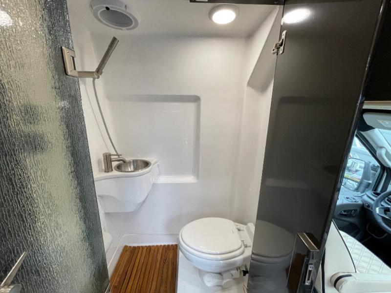 Forget about the way that you used to travel and begin traveling like a pro with this Ford Passage Class B gas motorhome! This coach has it all! You will find a wet bath with a retractable clothes line for staying clean, a rear power folding sofa bed for getting a full night of rest, a galley kitchen with an induction cooktop and stainless steel microwave for preparing easy meals, and a rear HDTV for entertaining yourself after a long day of traveling. Some of the other additions that are sure to make your life easier are the pull-out pantry below the countertop, the cab swivel seats, the climate controlled roof fan, and more!