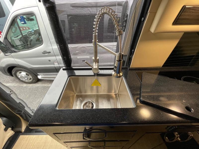 The Midwest Automotive Designs Ford Passage Class B gas motorhome is the luxurious and nimble coach of your dreams! With the Ford Passage, you will have superior craftsmanship which is most evidently seen in the dual battery charging system, the custom Maybach-style seating with seat belts, the digital touchscreen coach controls, and the complete insulation package. A power awing with an LED light comes standard outside, along with a 320-watt rooftop solar charging system, a rear hitch with a wiring package, and an exterior shower to name a few conveniences. Inside, you'll find composite seamless flooring, solid surface countertops, and under-sofa storage for your luggage and more!