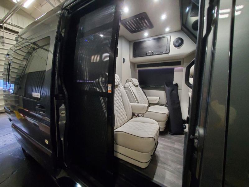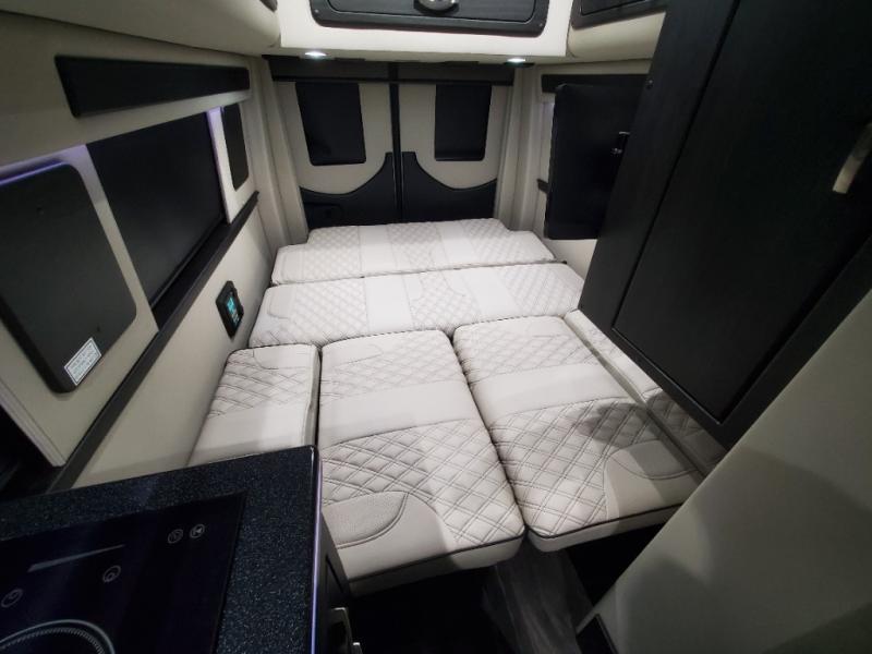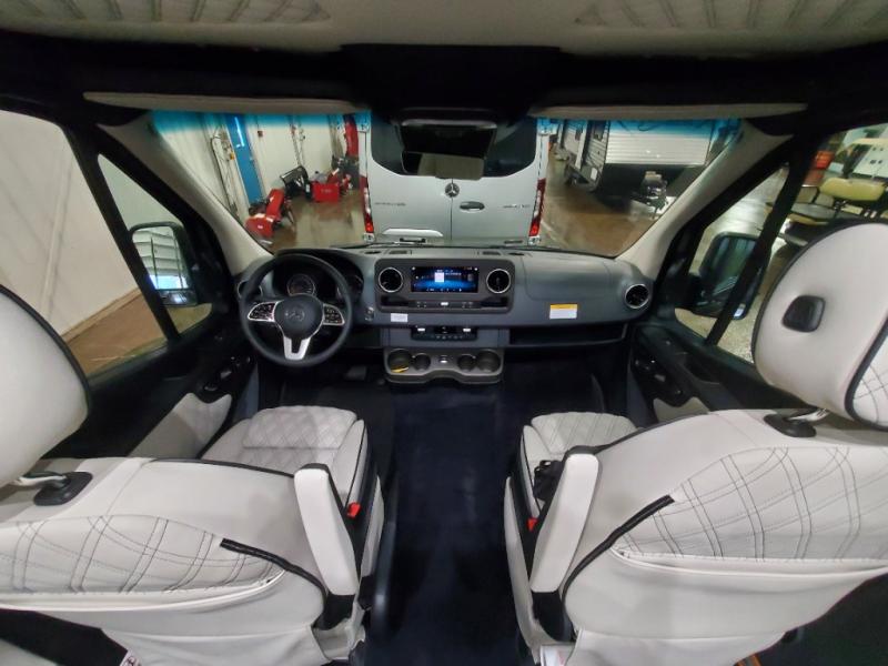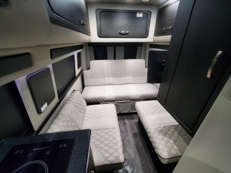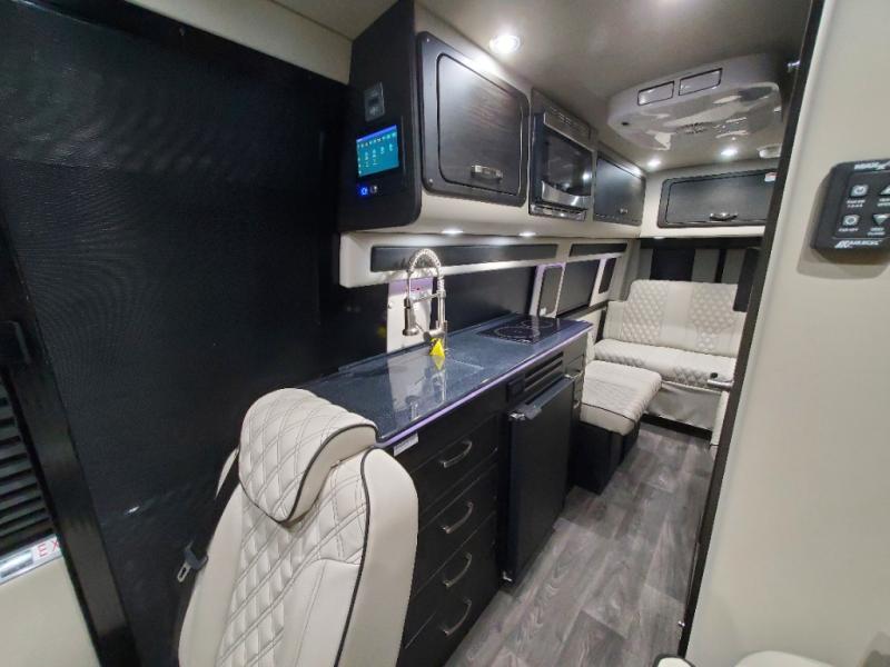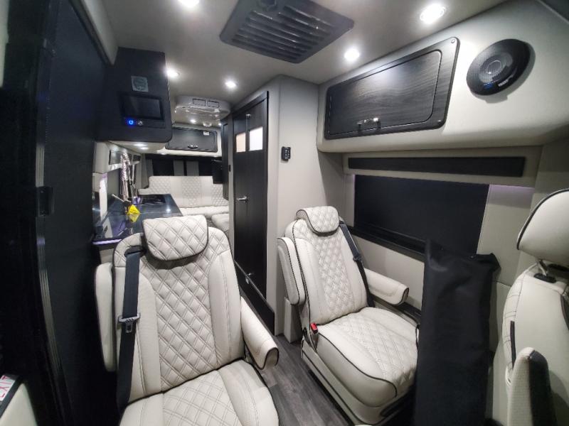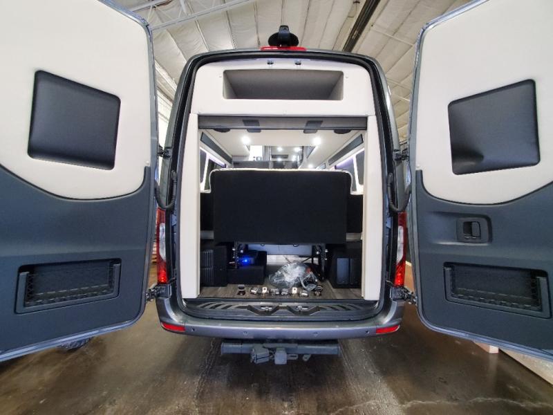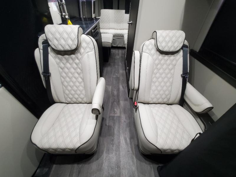 The sophisticated elegance found on the Patriot Class B diesel motorhomes by Midwest Automotive Designs is sure to entice you! The interior is packed with luxury appointments to make any trip enjoyable. Some of these include valances with wood inlay and indirect lighting, solid surface countertops, custom seating with seat belts, and a complete privacy shade package you are sure to appreciate. There are multiple 120V outlets and USB 12V chargers to keep you powered up, and the Quiet Tech 2.5kW propane generator will provide even more power. Outside, you'll find an upgraded Sumo suspension, an all-in-one utility bay, an exterior shower, and a roof-top solar charging system that will provide off-grid capabilities. And don't overlook the available options, like the air ride suspension system, outdoor entertainment prep kit, power window shades, and more!