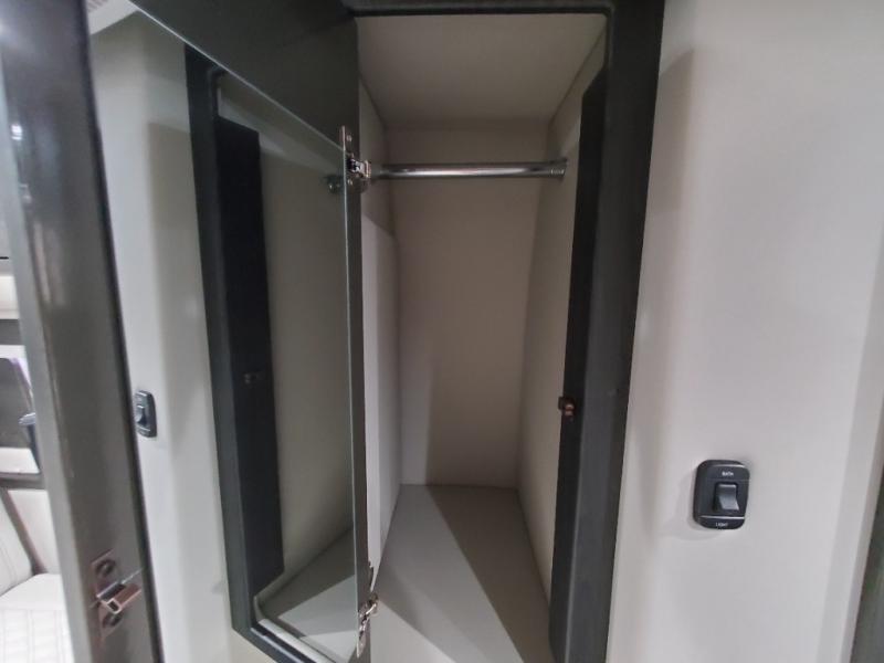 You will have lots of seating space on this Patriot Class B diesel motorhome! There is a rear power lounge that has three seat belts, so it can be used while traveling, and there are two sets of seats next to this sofa for more seating space. From this area, you can watch the rear HDTV or watch the optional front HDTV if you'd prefer! Make meals for the group, or keep it simple by preparing snacks in the microwave. A wet bath will keep you clean while you're out exploring, and you'll have lots of overhead cabinets to store your gear. The exterior height for this model is 9' 7" on the rear-wheel drive and 9' 11" on the 4x4.