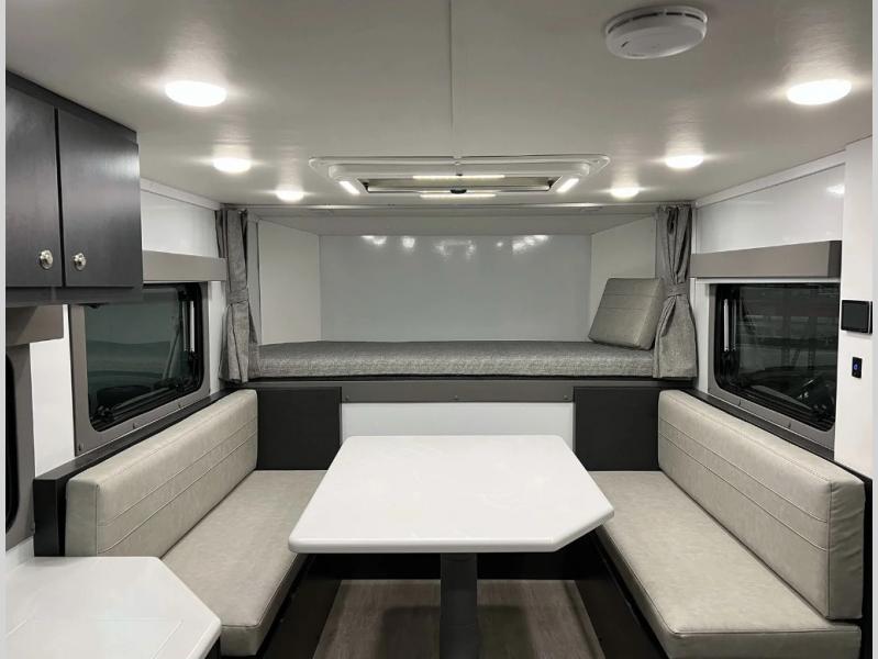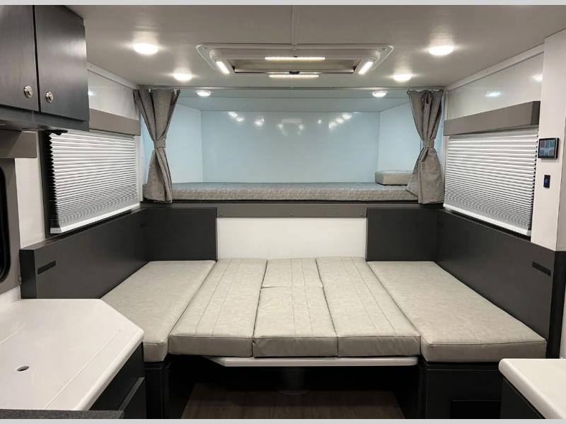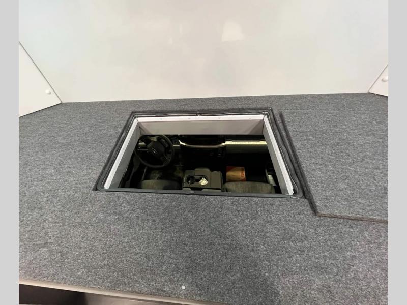 - Cabover bunk with escape hatch