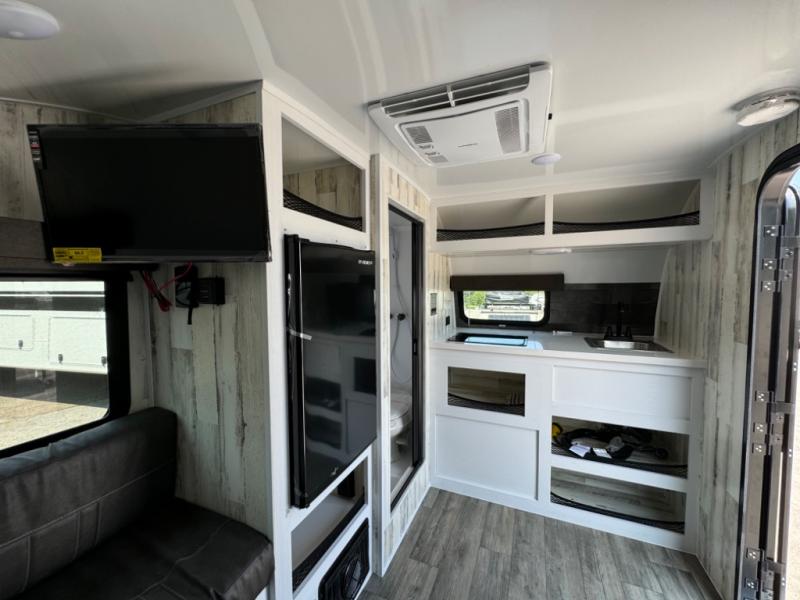 With the Big Buggy teardrop trailer by Modern Buggy RV, you will have all-terrain tires with 14" ground clearance allowing you to venture on bumpy, muddy and off-the-beaten path roads. They are full of modern amenities including LED lights, outlets, and USB charging stations, plus a 13,500 BTU air conditioner and electric heat strip. These models are built on a high quality strength, custom aluminum frame, and are put together with AZDEL ceiling and walls. Get out and explore today with the Big Buggy in tow!