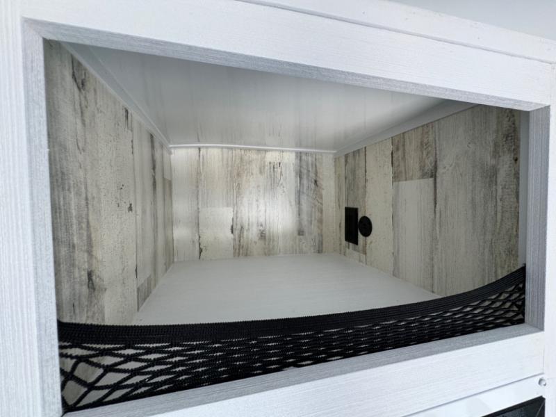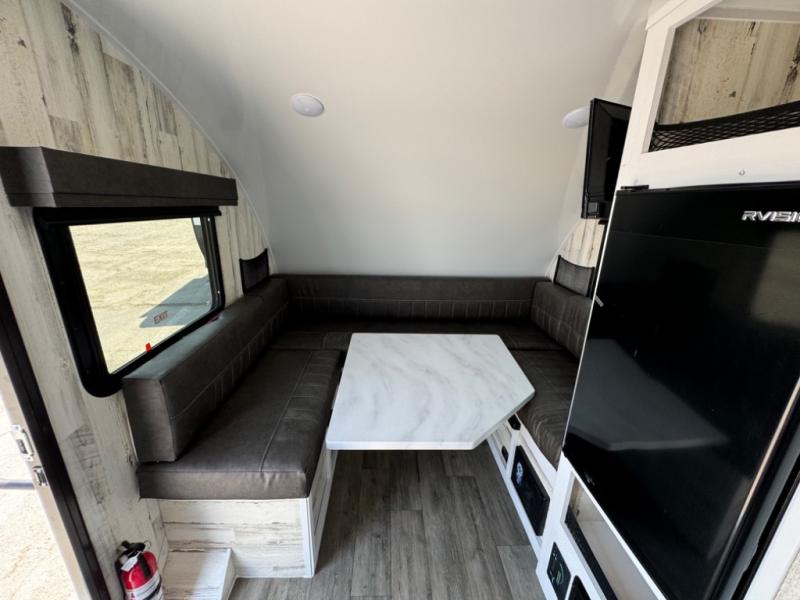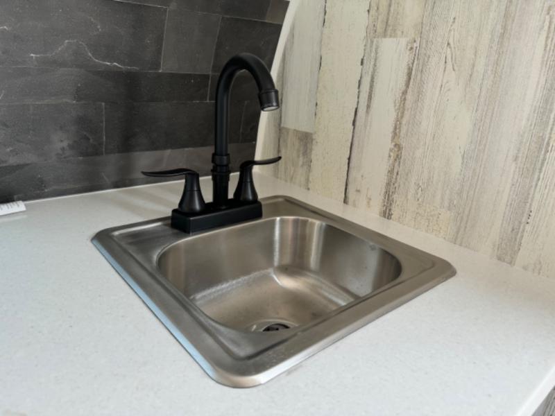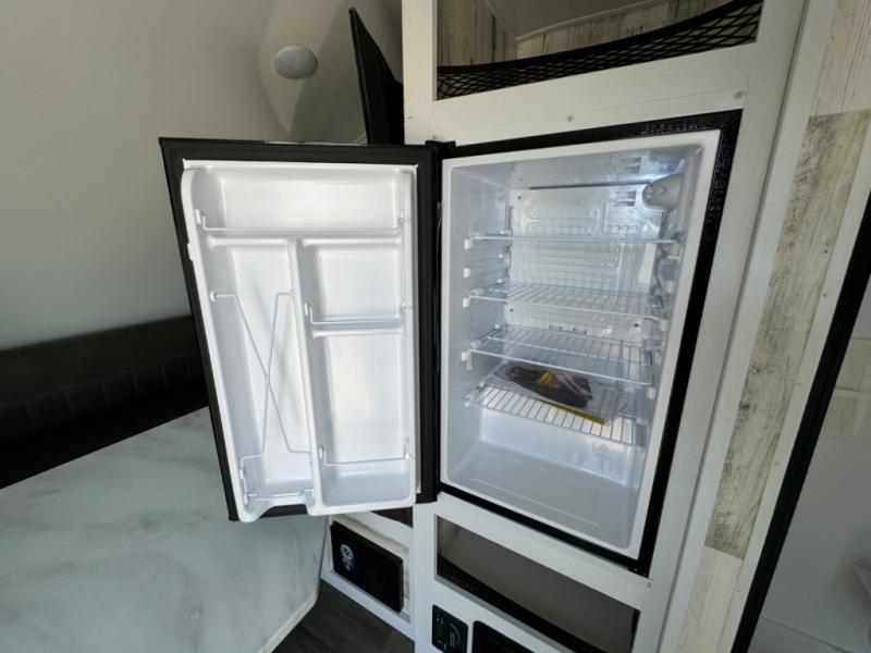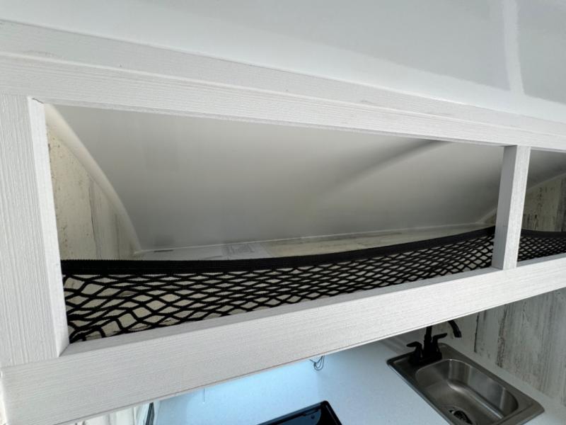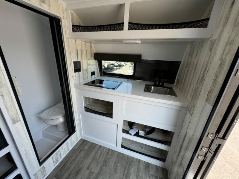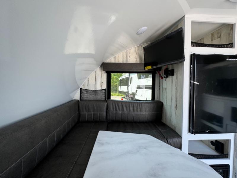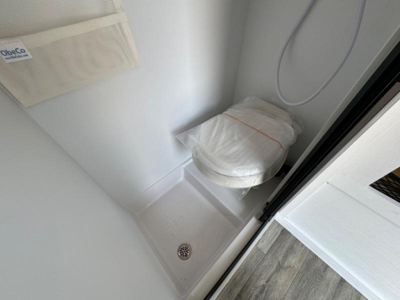 Bring the conveniences of your home with you to the campground in this teardrop trailer! The thoughtfully designed kitchen includes a pull out drawer for spices, a solid surface countertop with backsplash, a water proof paper towel holder, a solid surface sink with a faucet for easy clean up, and a large refrigerator to enjoy cold beverages. You will get a good night's rest on the comfy 6" memory foam mattress that also converts into a dining room table with seating. The bathroom has a Dometic toilet, a shower, and a two way vent fan to eliminate the steam. Plus, you have an outside shower/spray port to rinse the mud off your feet before entering inside. Store all of your gear in the 36" x 14" exterior baggage door with nylon organizer pockets, and you will also appreciate the waterproof storage organizer!