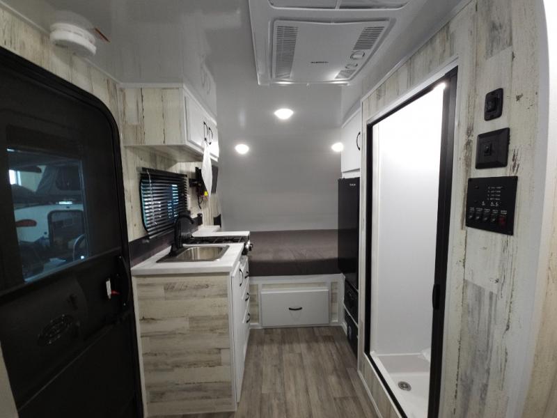 With the Big Buggy teardrop trailer by Modern Buggy RV, you will have all-terrain tires with 14" ground clearance allowing you to venture on bumpy, muddy and off-the-beaten path roads. They are full of modern amenities including LED lights, outlets, and USB charging stations, plus a 13,500 BTU air conditioner and electric heat strip. These models are built on a high quality strength, custom aluminum frame, and are put together with AZDEL ceiling and walls. Get out and explore today with the Big Buggy in tow!